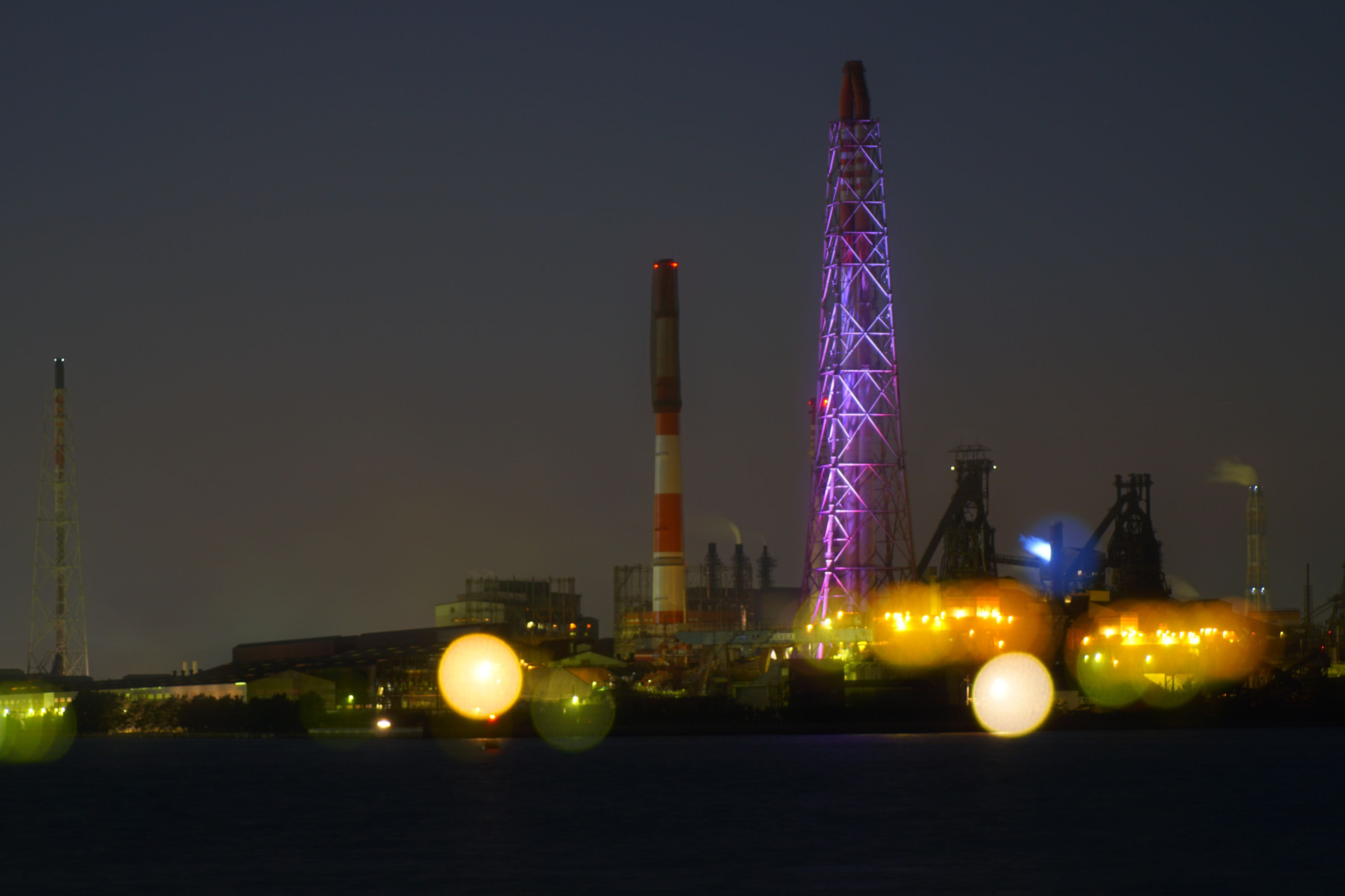 雨降る工場夜景