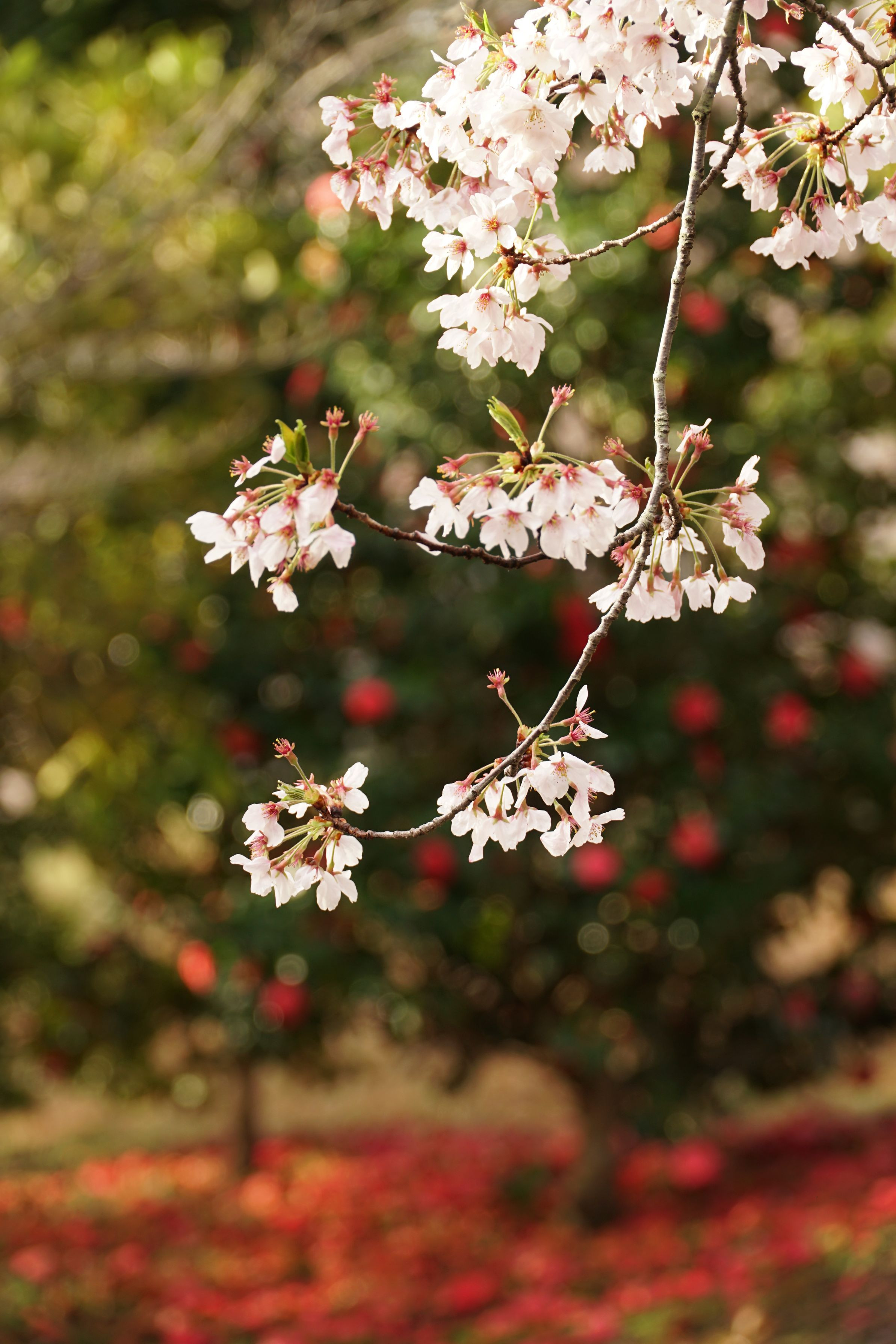 桜と椿がそろそろ終わりそうな日に、椿を背景に撮ってみました。