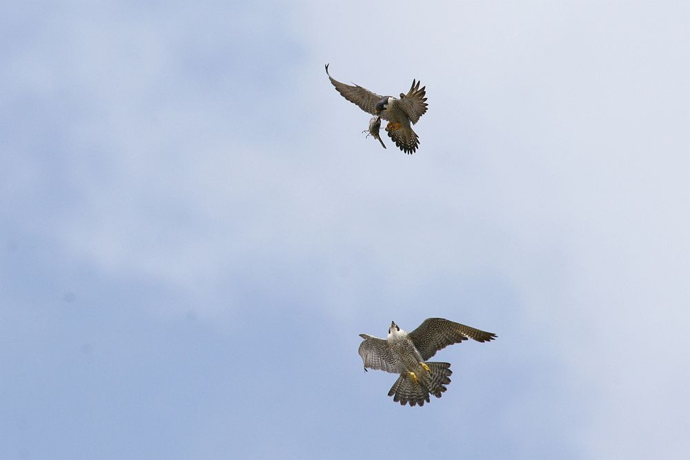 上のオスからメスが食べ物を受け取る瞬間です。