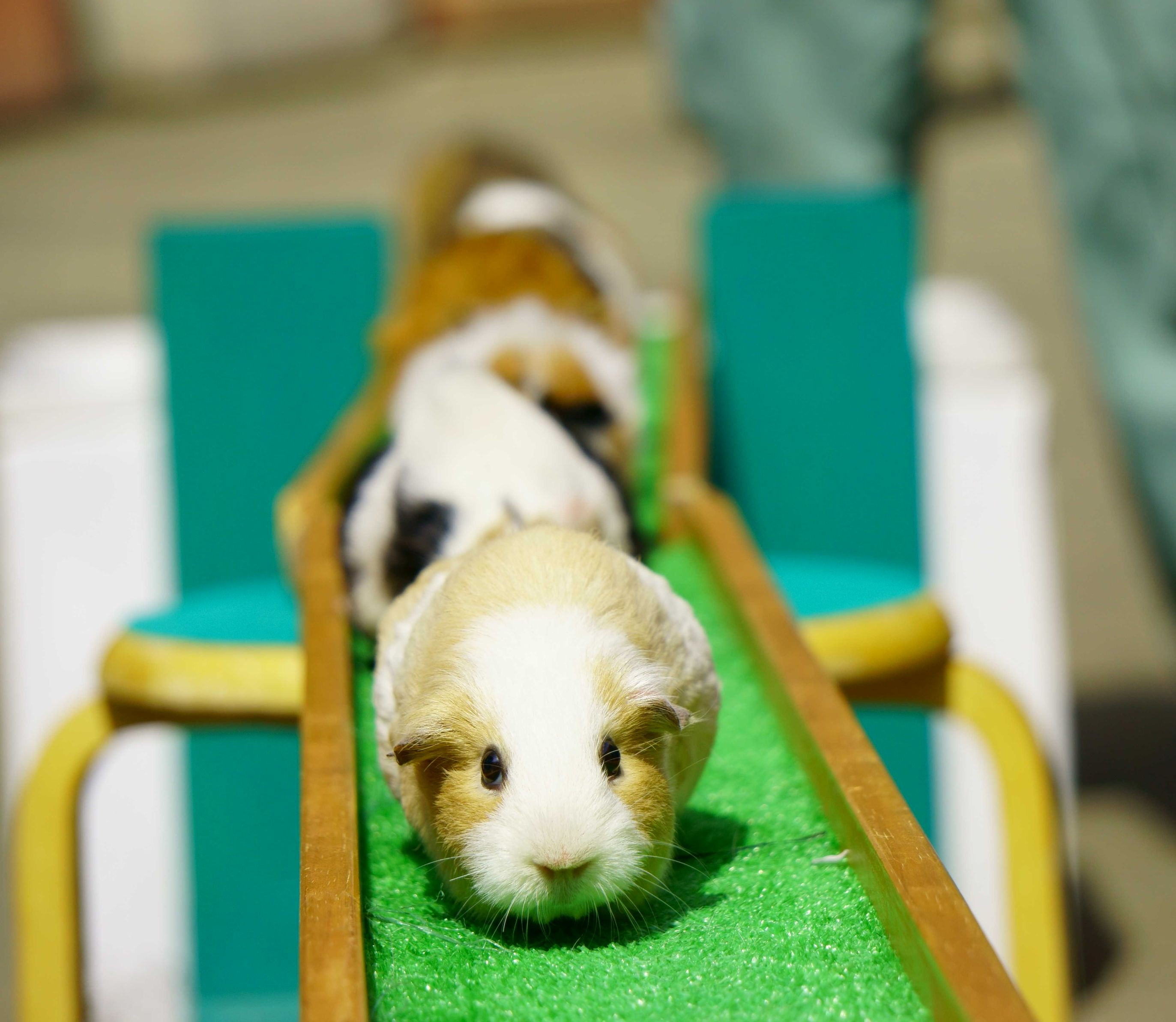 けなげに走るモルモットがかわいい。 みんなゴールすればおいしい食事が待ってます。 頑張れ!!
