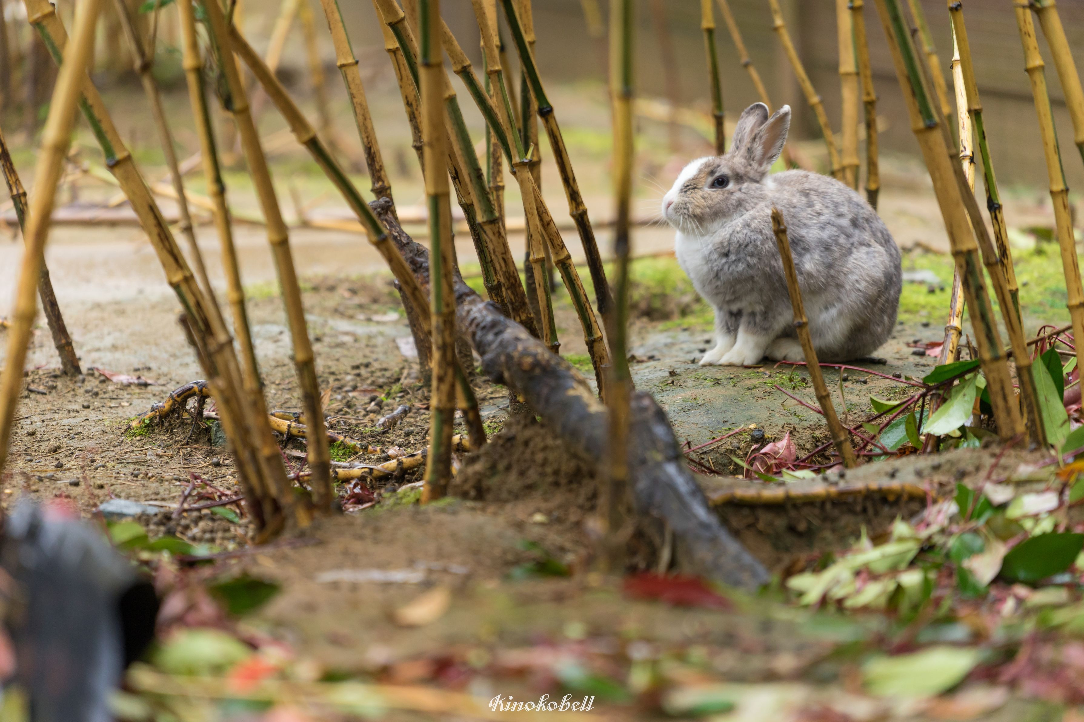 石川県加賀市 月うさぎの里に行ってきました。外は生憎の雨。雨宿りをするようにちょこんと座るウサギさんを発見。じっとしてくれていたので時間をかけてイメージ通りの画が撮れました。終わった後はモデル料のエサをあげてきました~。
