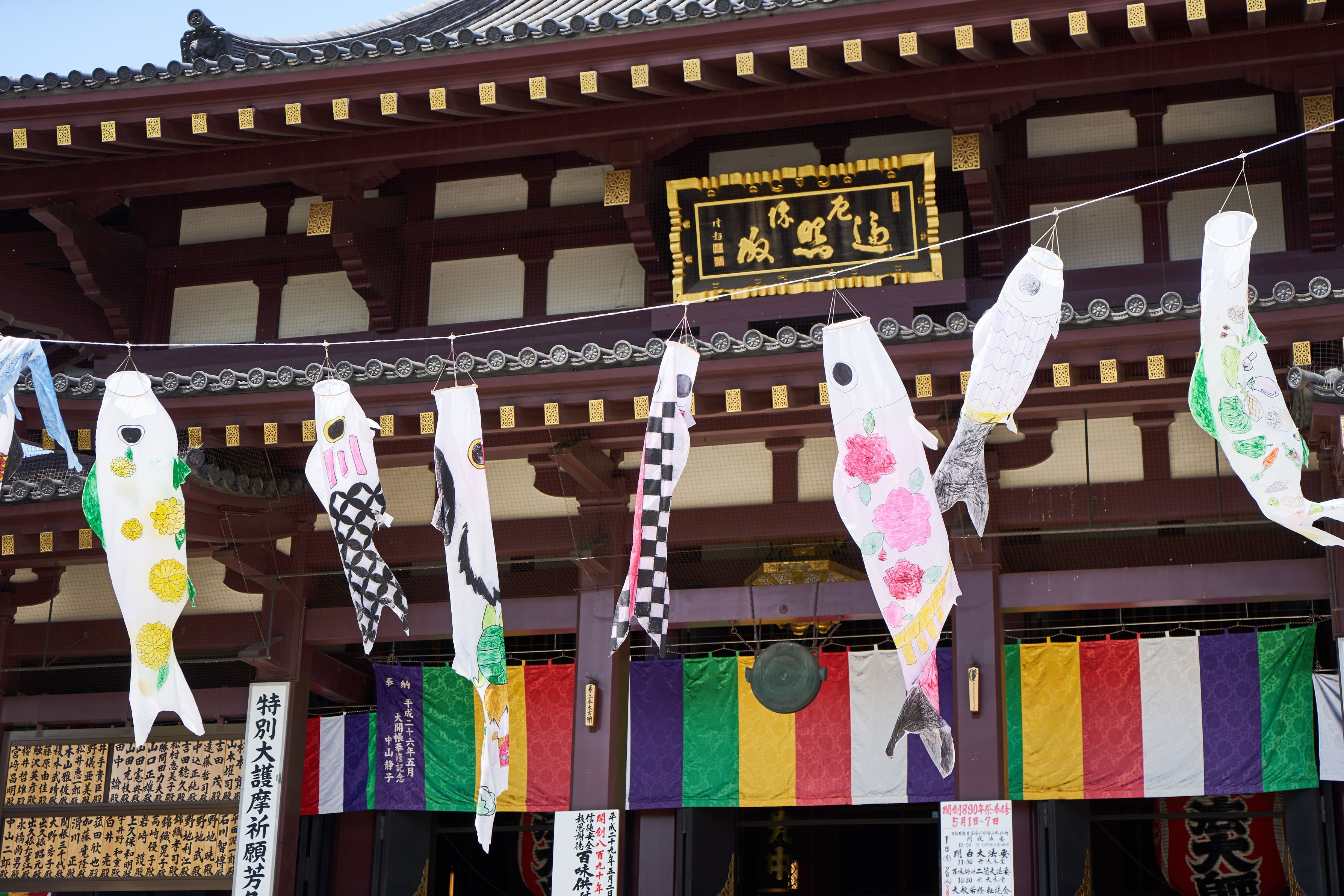 川崎大師で泳いでた鯉のぼり。背景をもっとぼかしたい欲が...