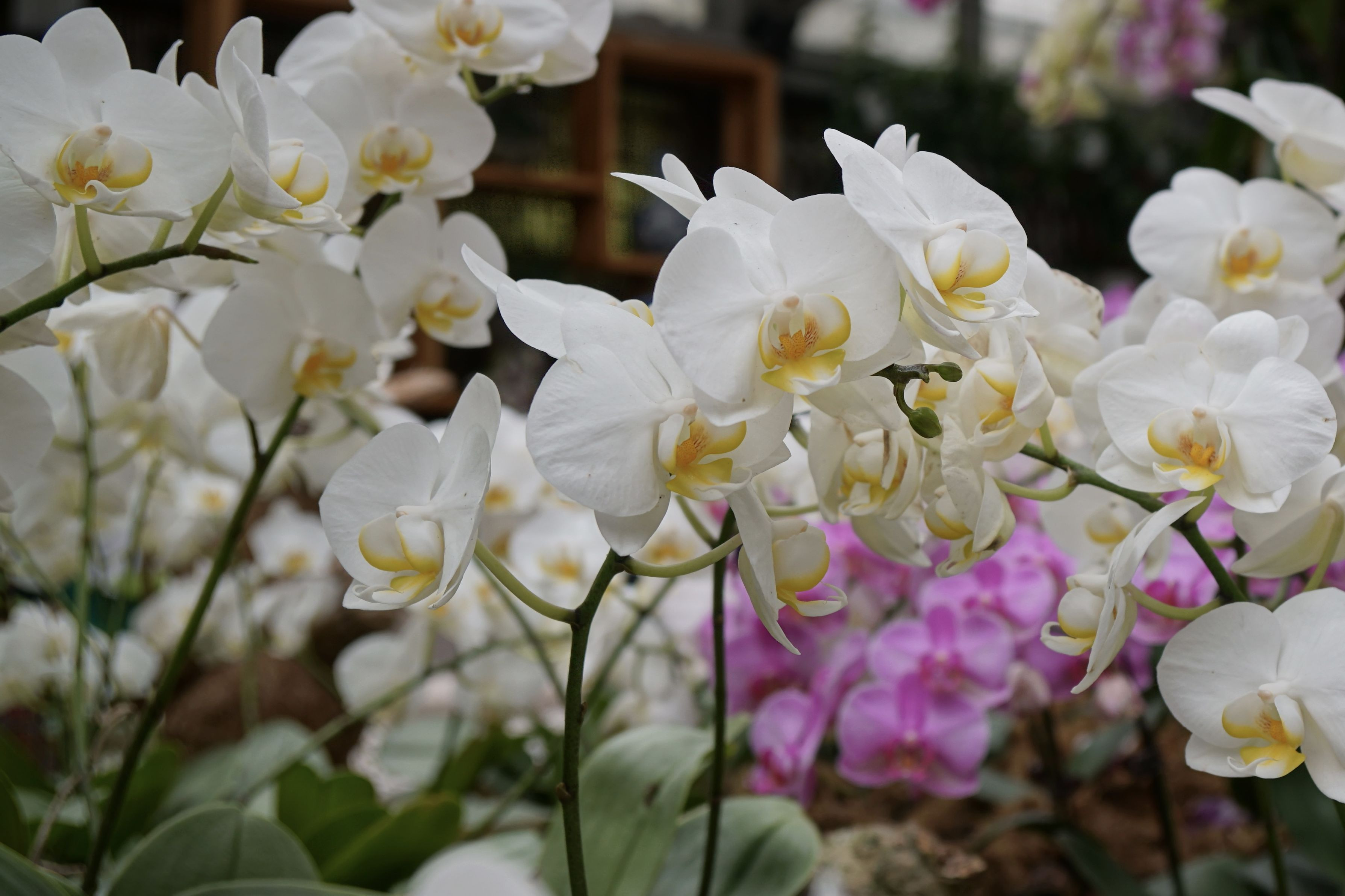 温室で撮りました。温室育ちのくせに各花が自己主張しているようで面白いです。