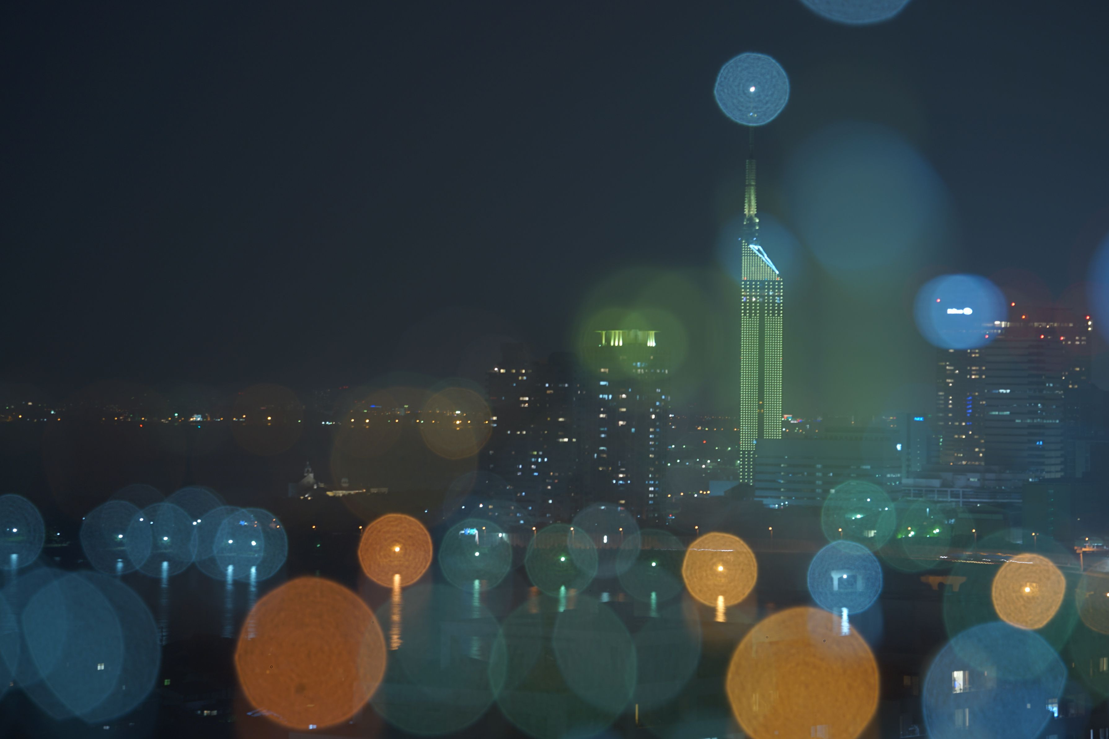 オフ会で愛宕神社から臨む福岡タワーを撮ってきました。 丸ボケ2種を重ねてみました。 ほわわん♪