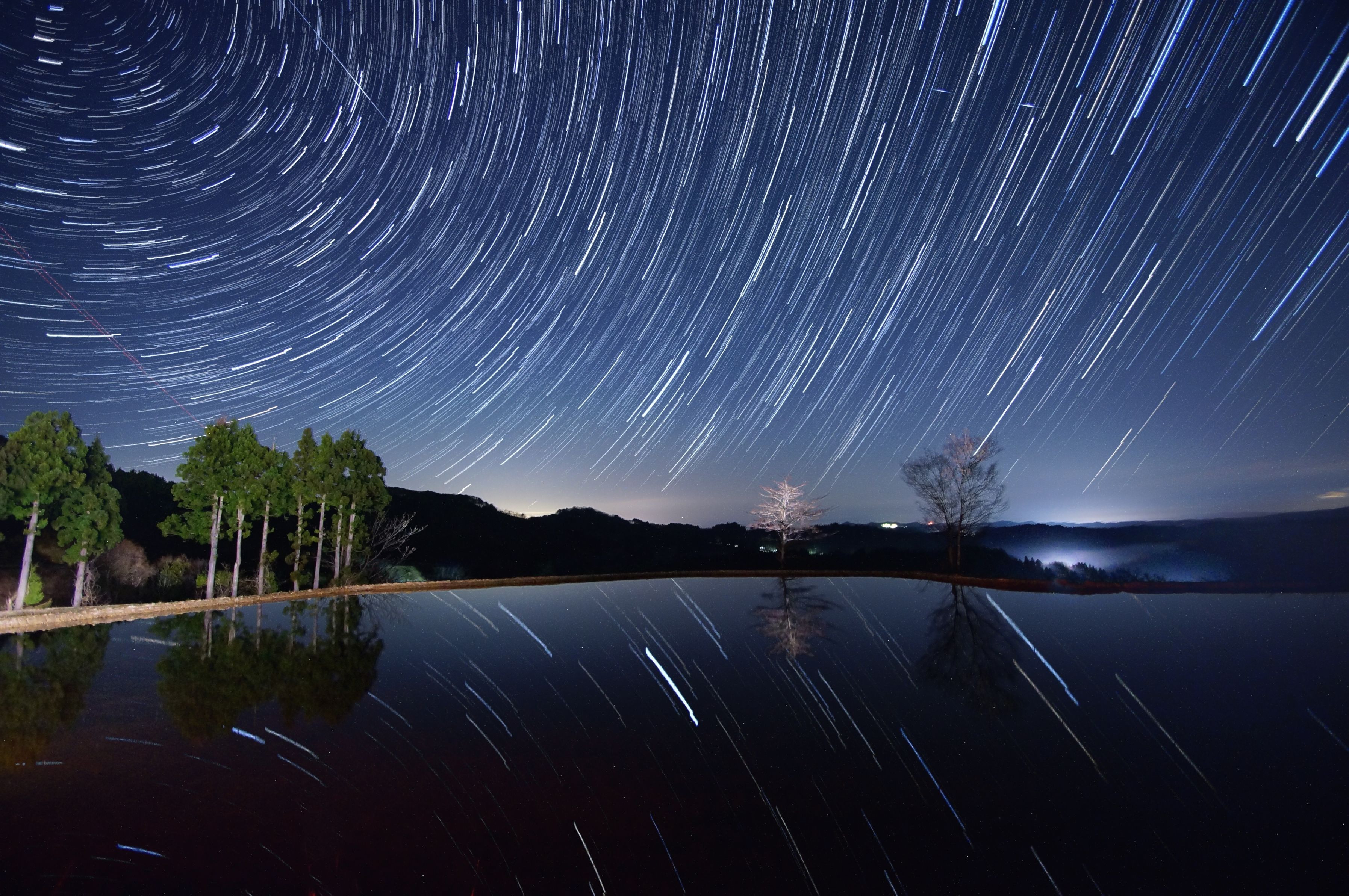 星峠に棚田に星の軌跡が映りこみました。