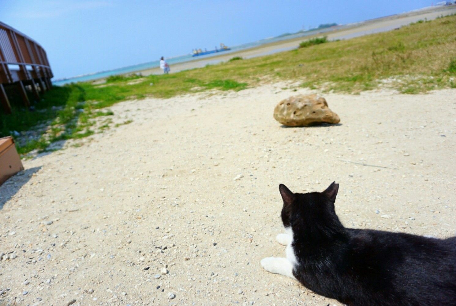 沖縄の綺麗な砂浜で猫がくつろいでました☺ 海も綺麗!