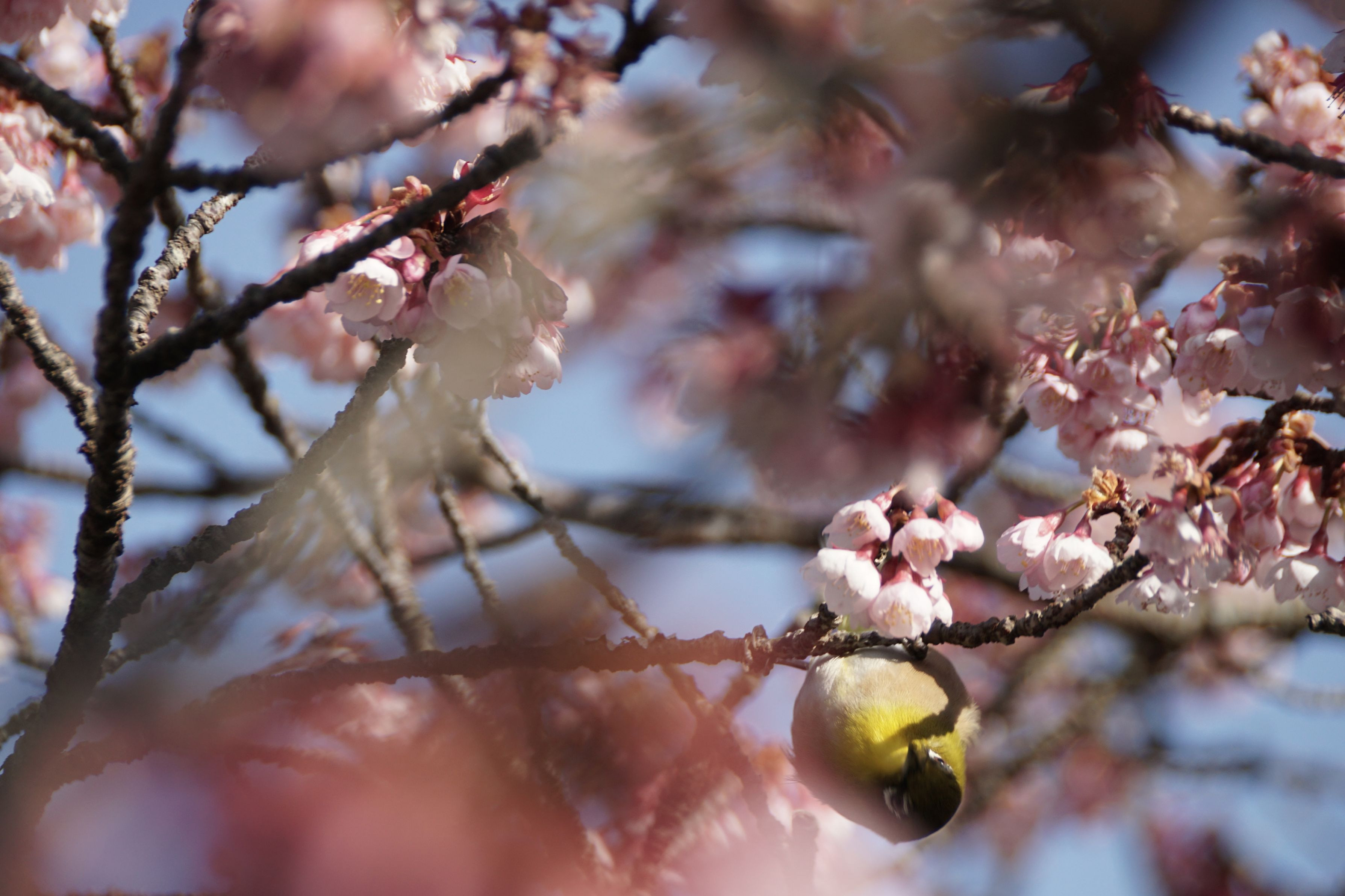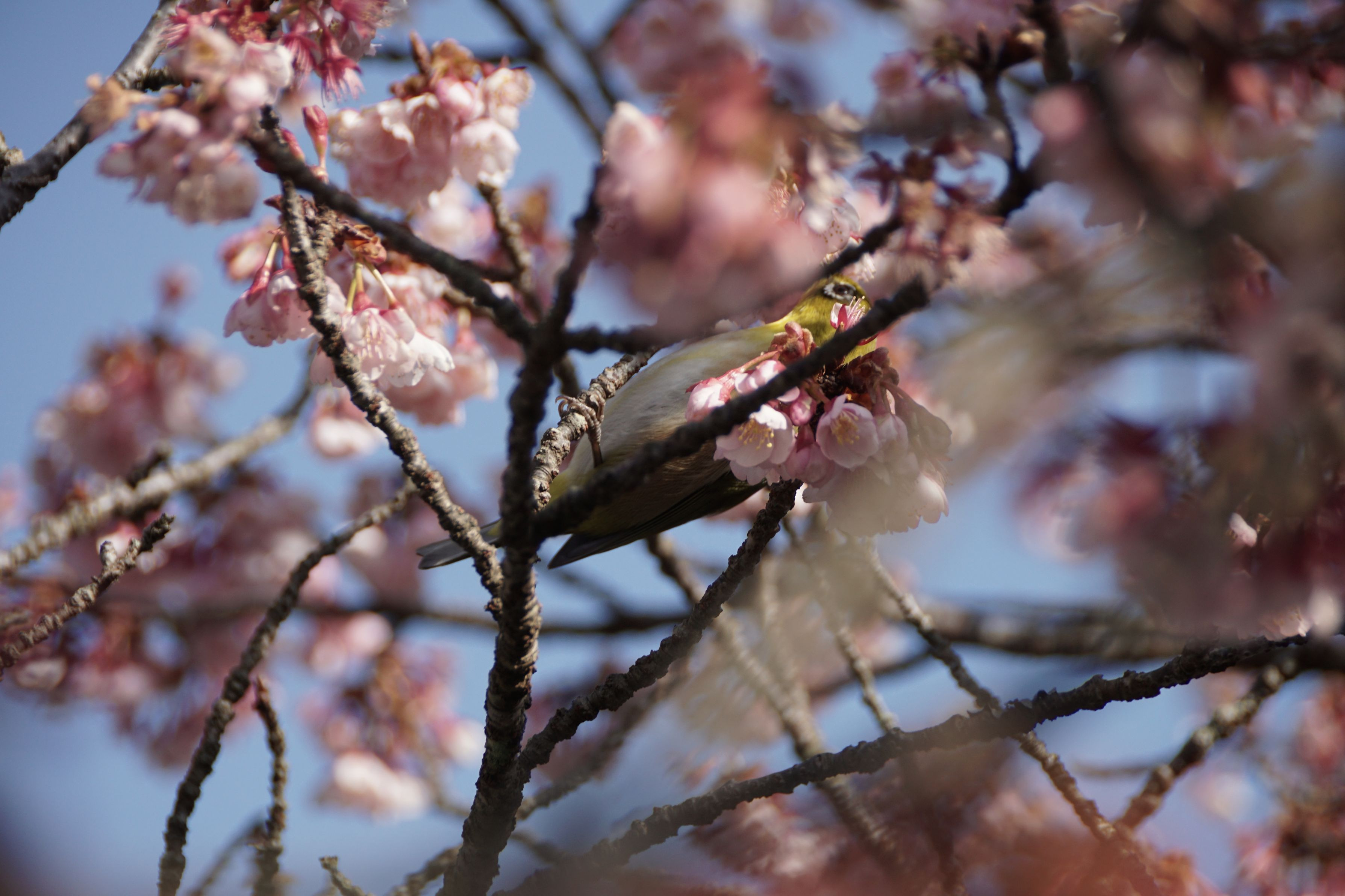 場所:鎮国寺(福岡県宗像市) 日時:2017/1/28 メジロを追っかけまわすのが大変でした。