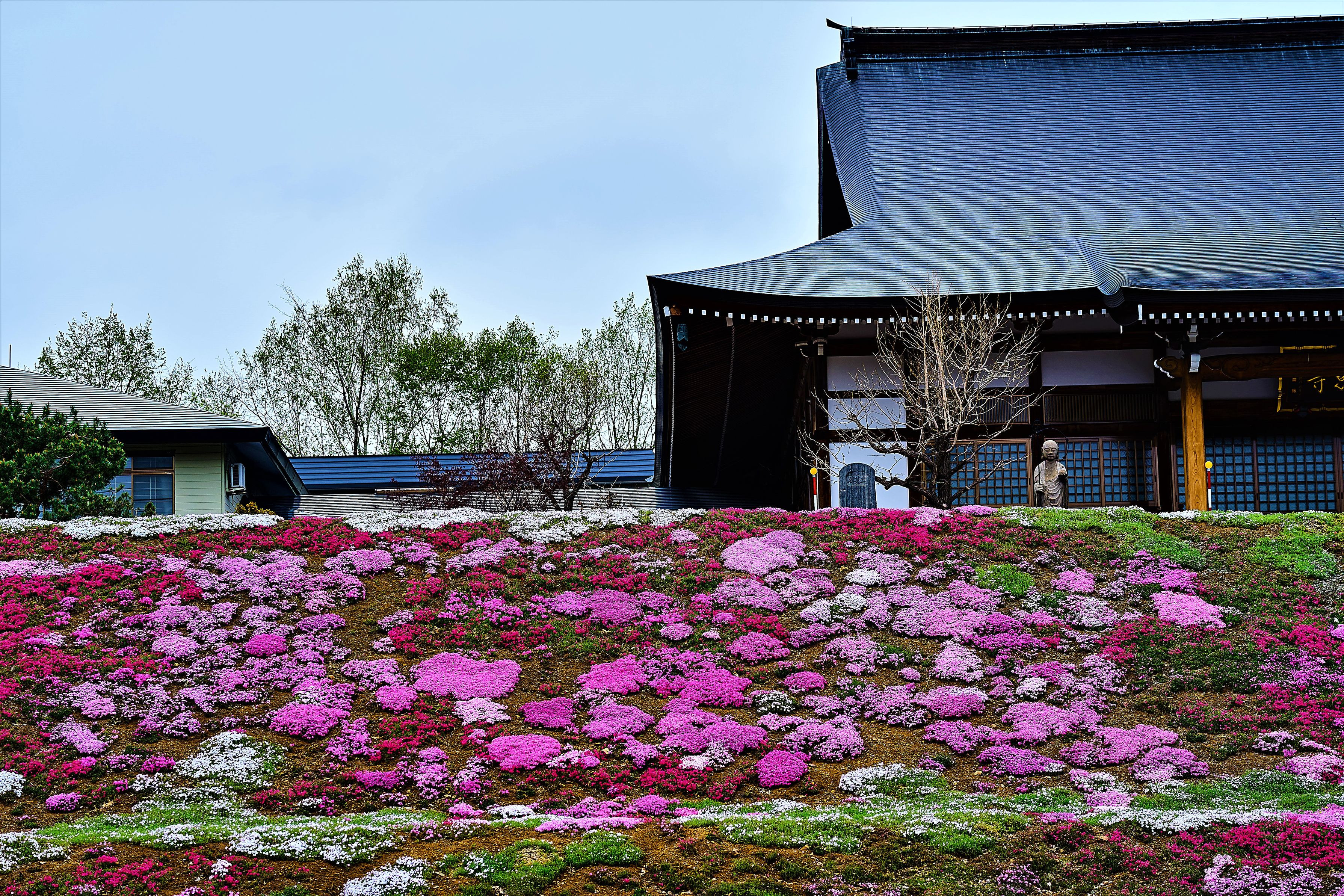 お寺の土手に芝桜 来週以降満開になります
