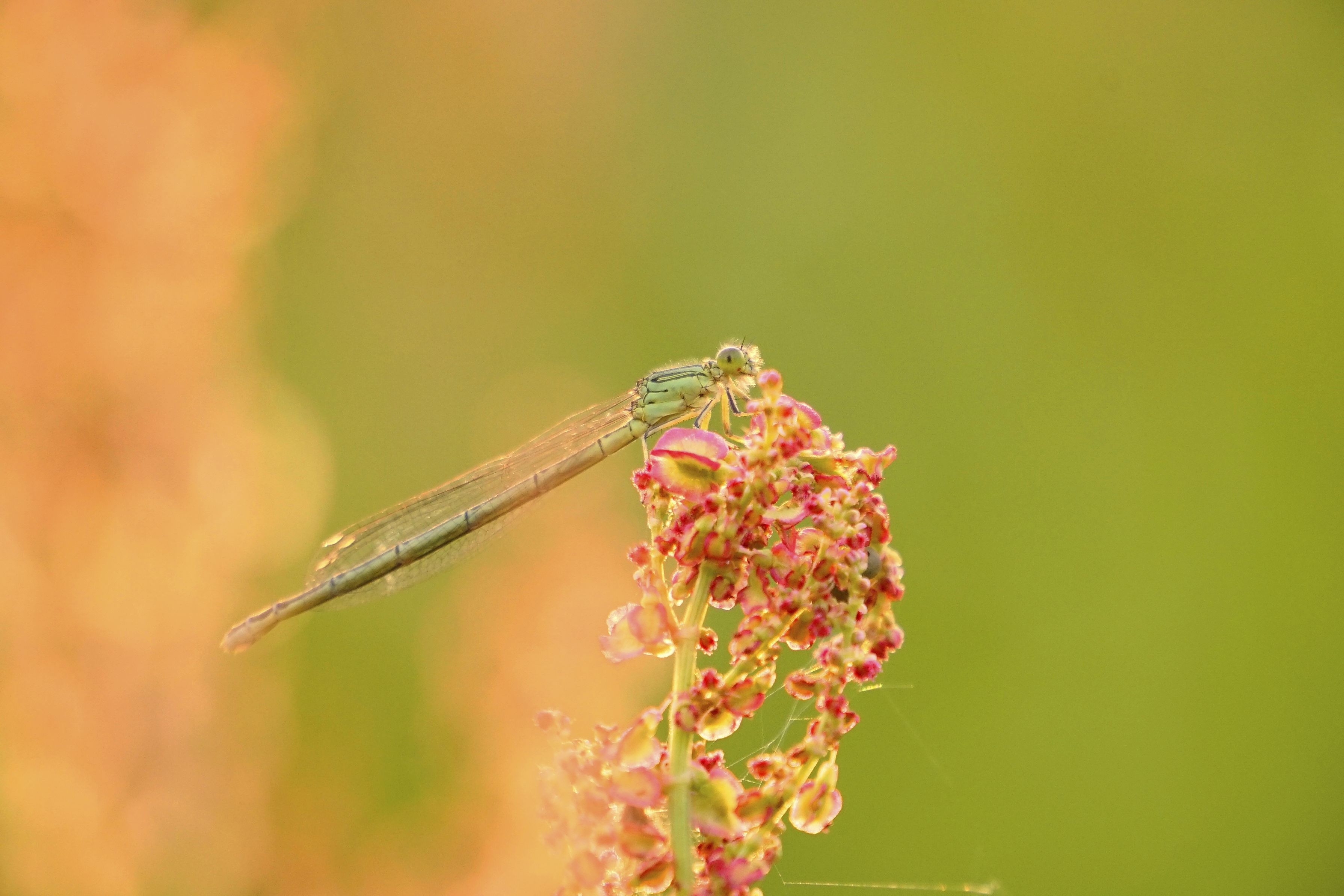 スイバの花にちょこんと留まったアジアイトトンボ? 合っているかな?