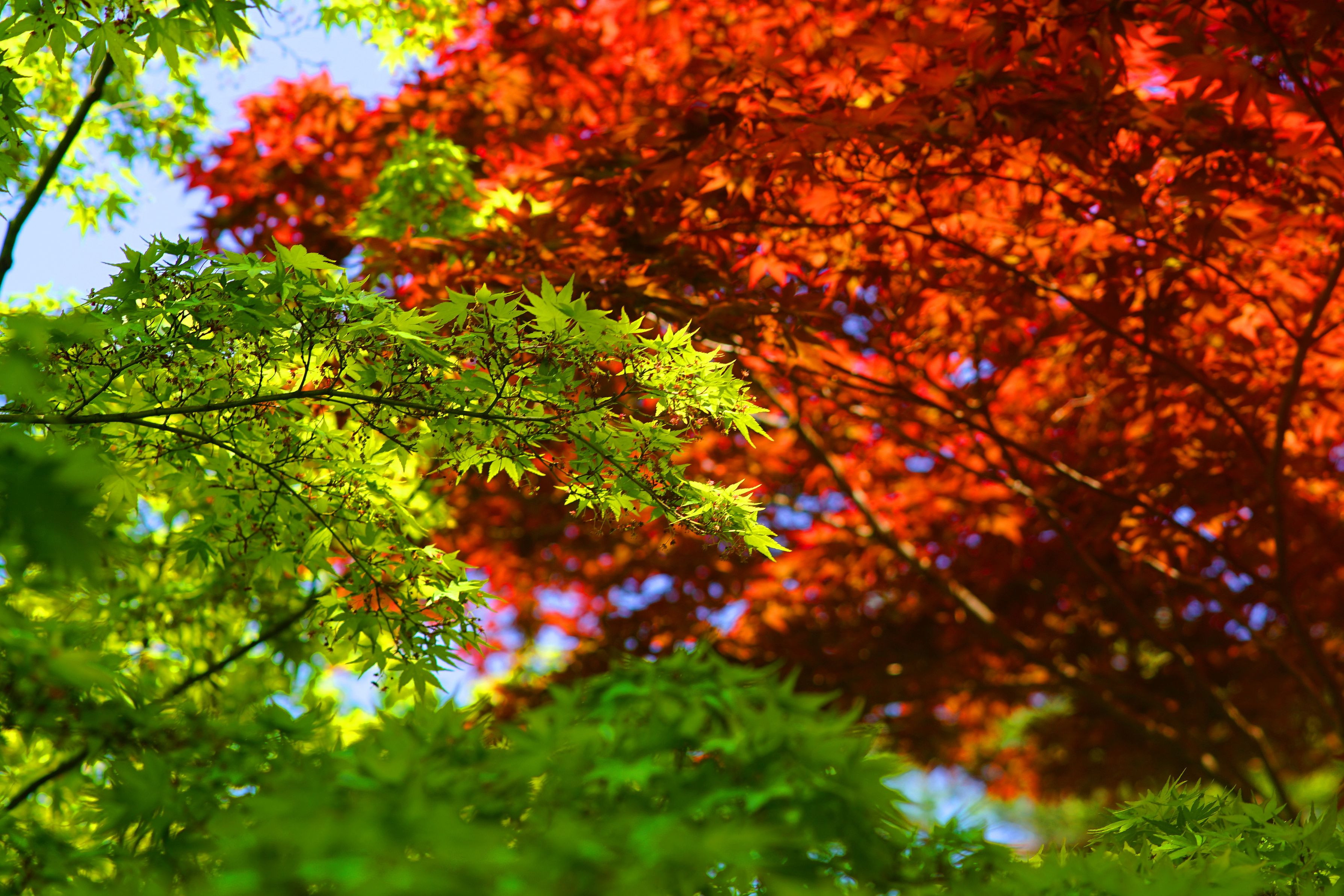お休みも終わりですね。色違いの紅葉の鮮やかさを撮りたくて(^^♪