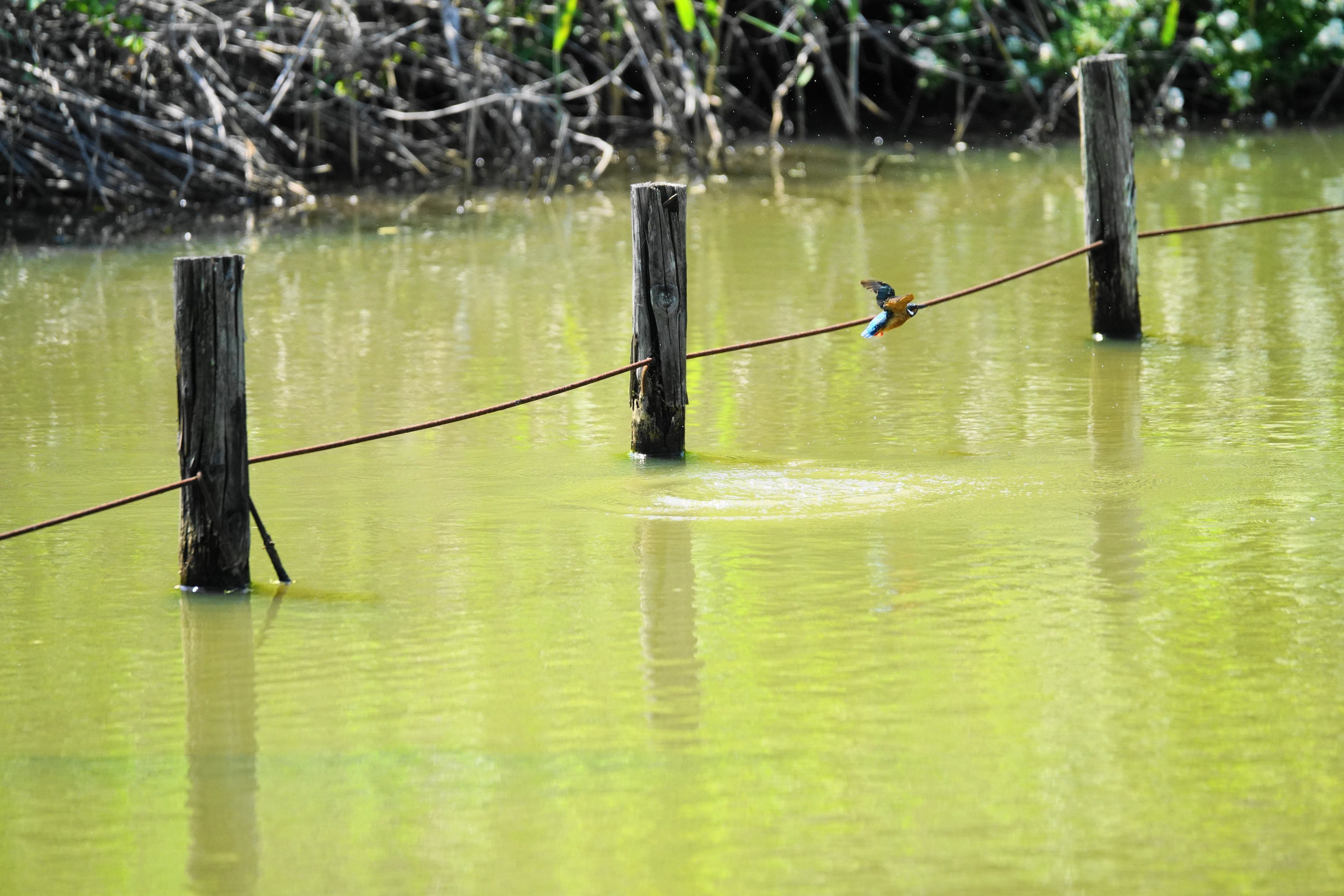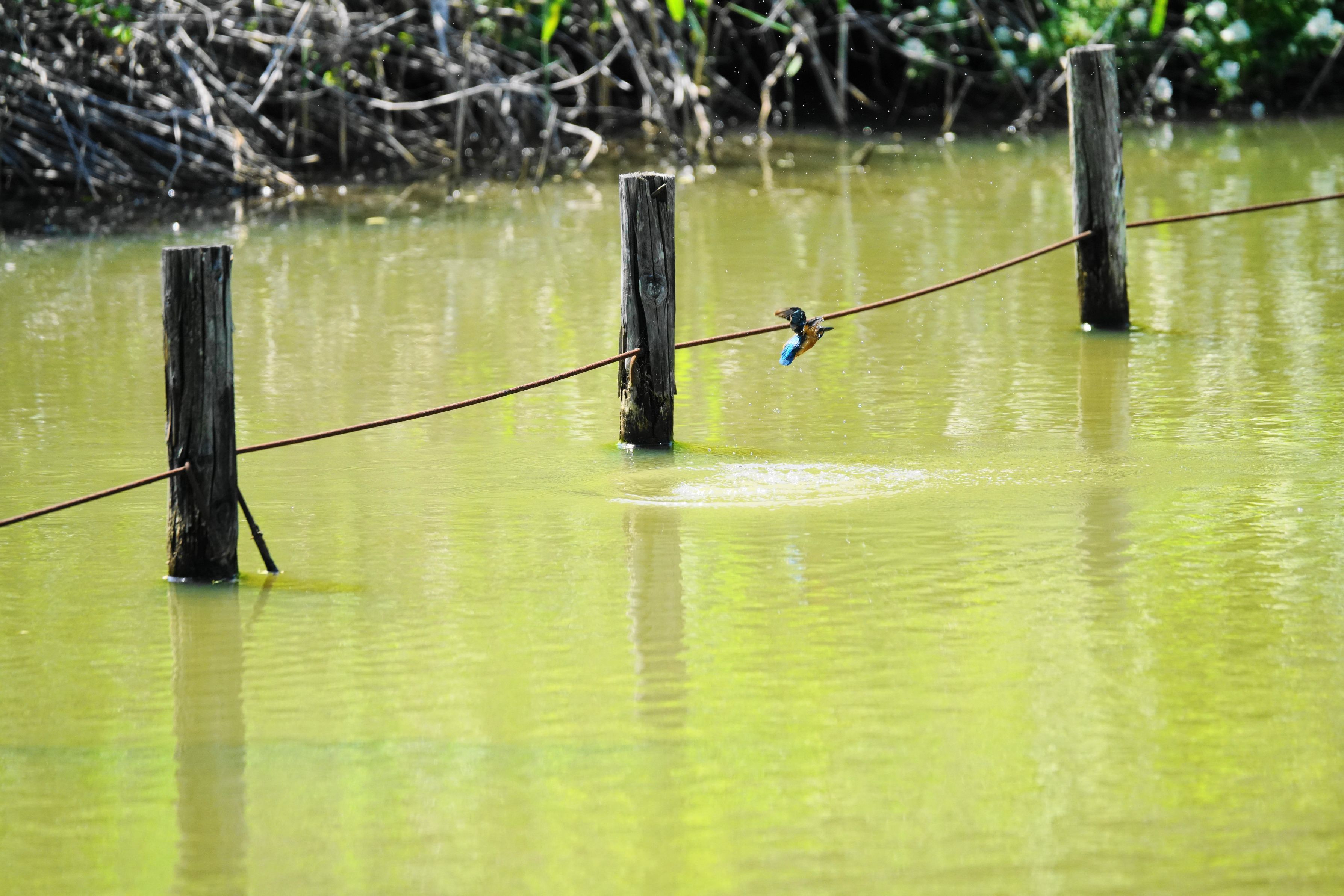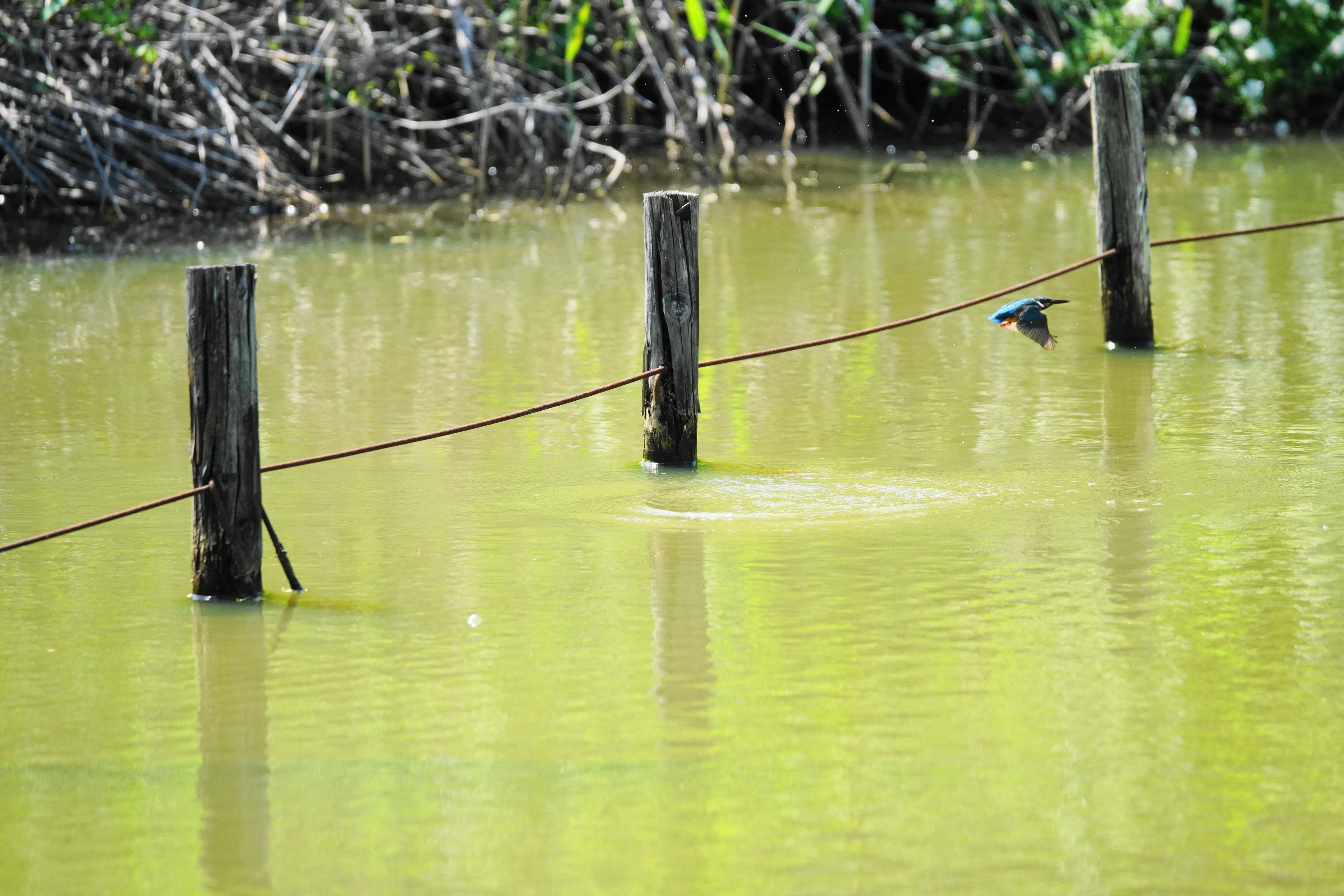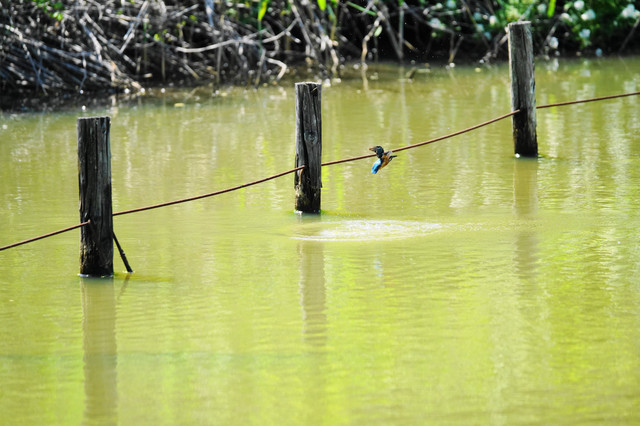 カワセミ君が水に飛び込み、飛び出していきました。