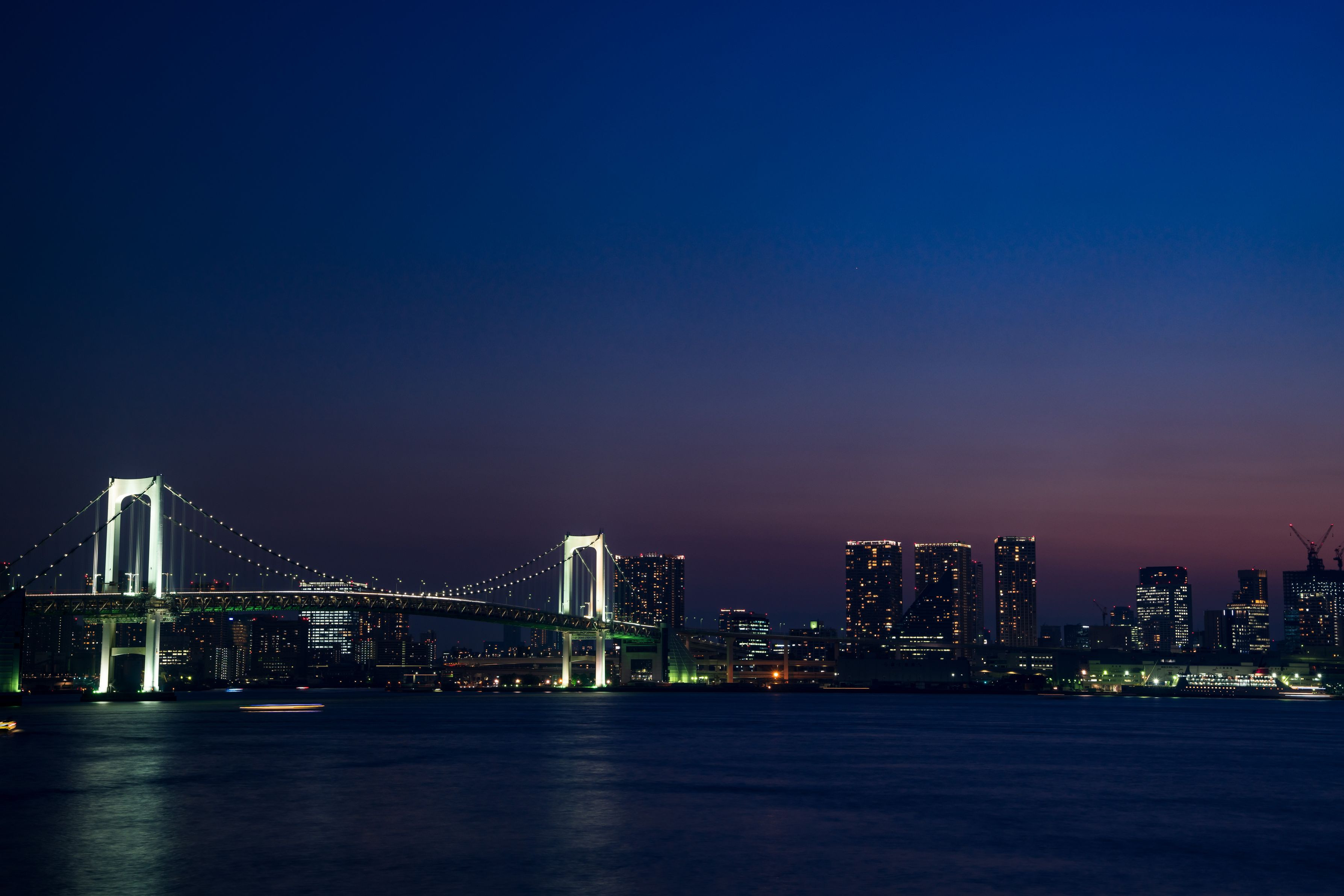 ブルーの世界へ入っていく レインボーブリッジの姿を撮影。 千葉から来られた人と一緒に撮りました。