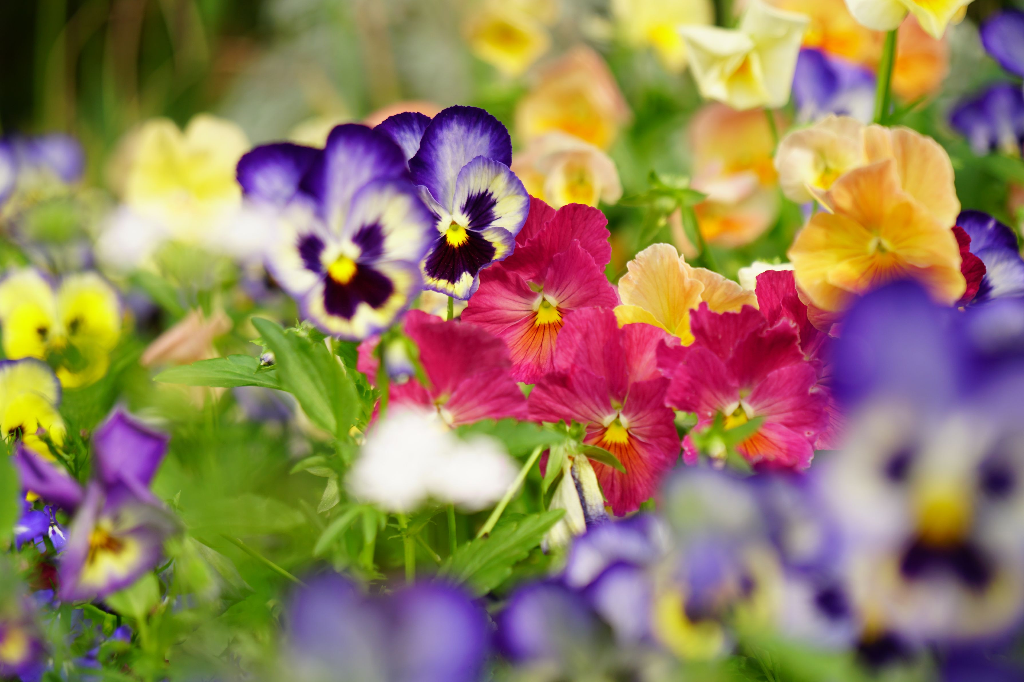 曇りな天気ですがカラフルにうつる花は春を感じさせてくれます