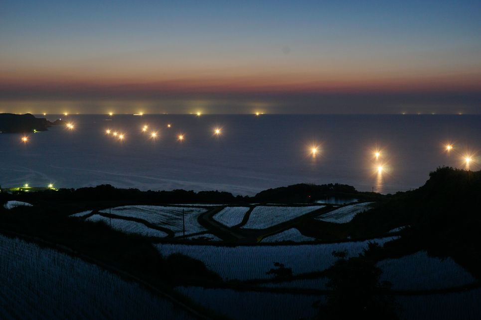 山口県・長門市の東後畑の棚田と漁火です。今年2回目の訪問です。