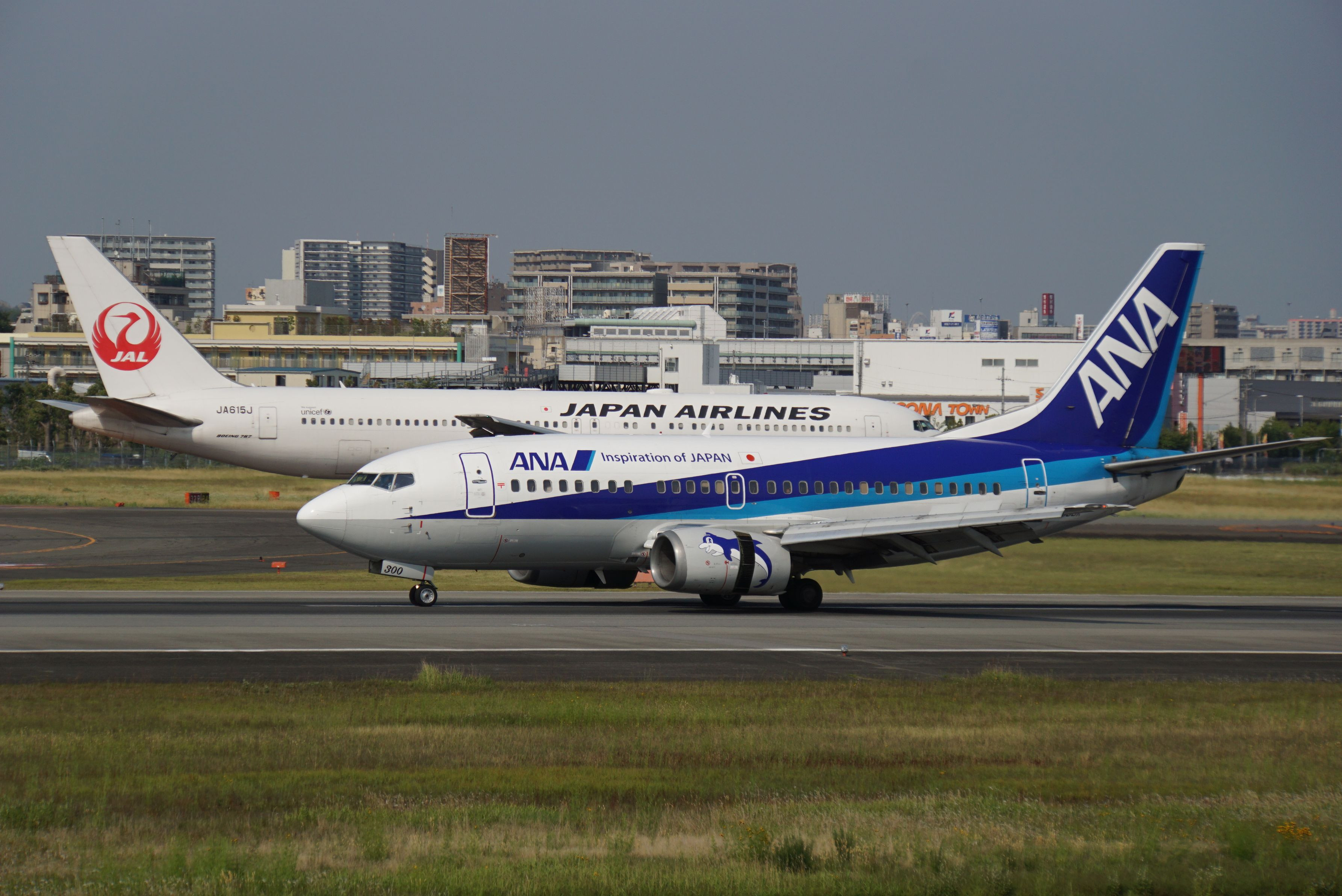 2社の飛行機が交錯するシーンです。
