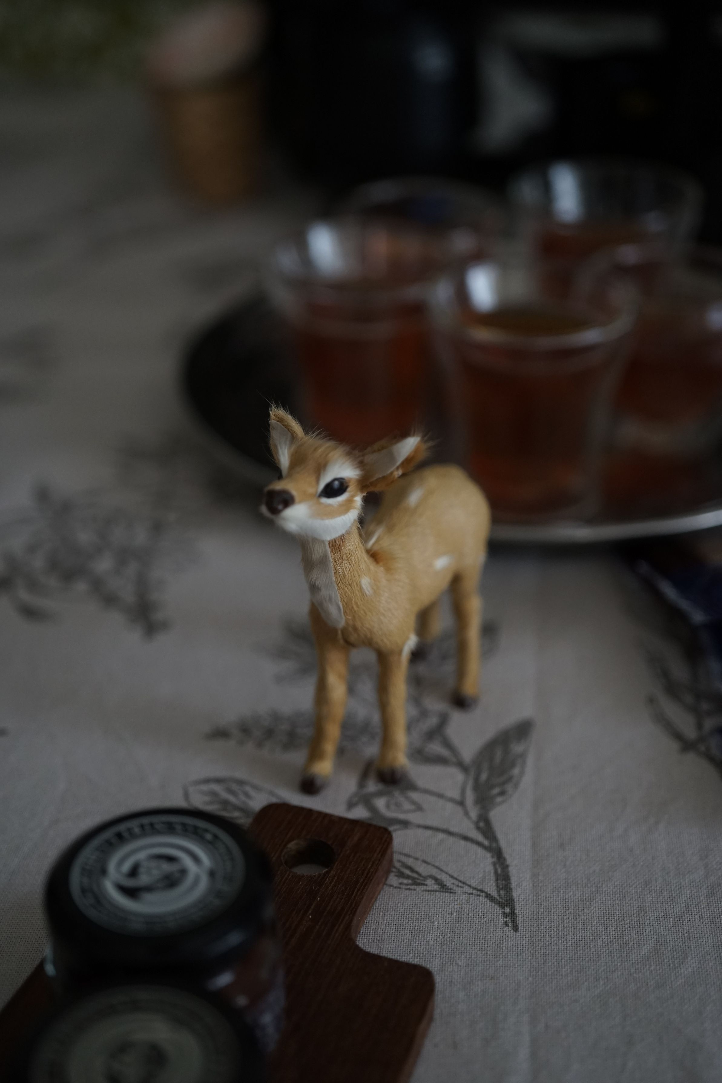 フォトレッスンで、データを提出させてもらった後に撮ったオフショットです。この日はこのバンビがモデルさんで大活躍。お疲れ様のお茶の横で、ボクも頑張ったよ~!と言っておりました。^^