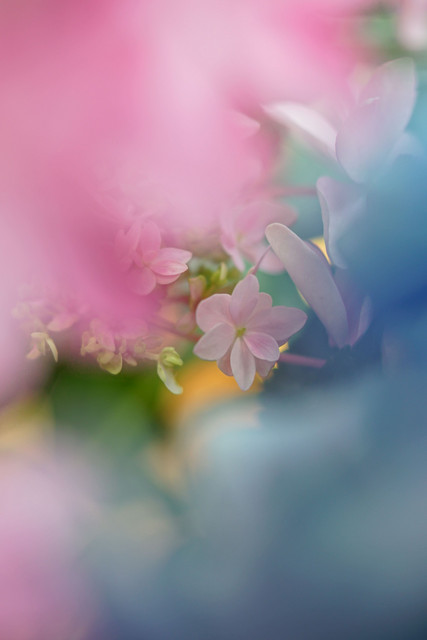 お花全体でなく、アップでひとつひとつの小さなアジサイの花に注目して撮りました。