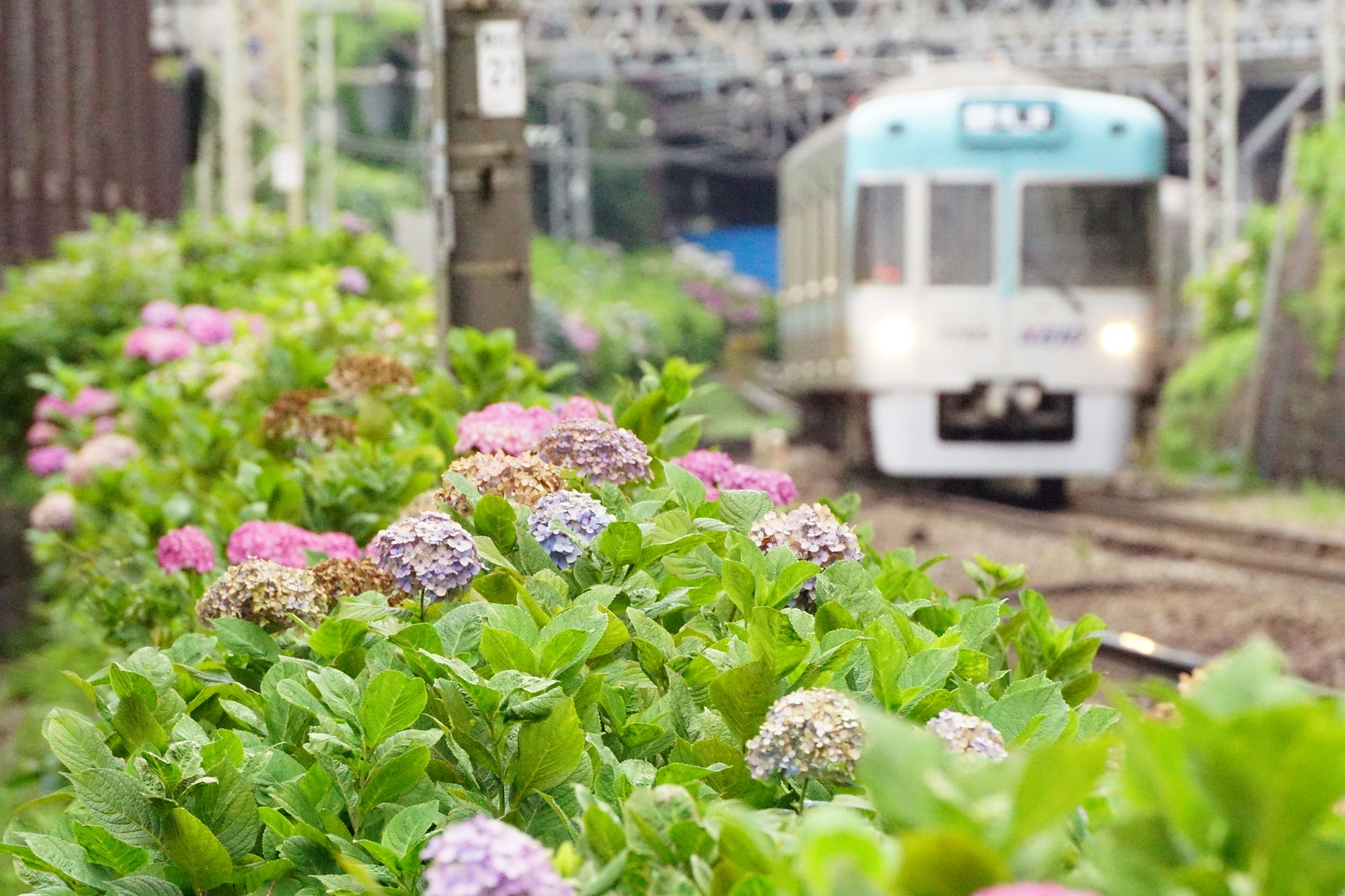 近所にあじさいの隠れた名所があることに気づき、にわか撮り鉄に挑戦。 井の頭線は車両の色がカラフルなのが特徴でたまにレインボーも通るのですが、この時来たのは残念ながら反対向きでした。天気が悪くなってきたので、またの機会にしよーっと。