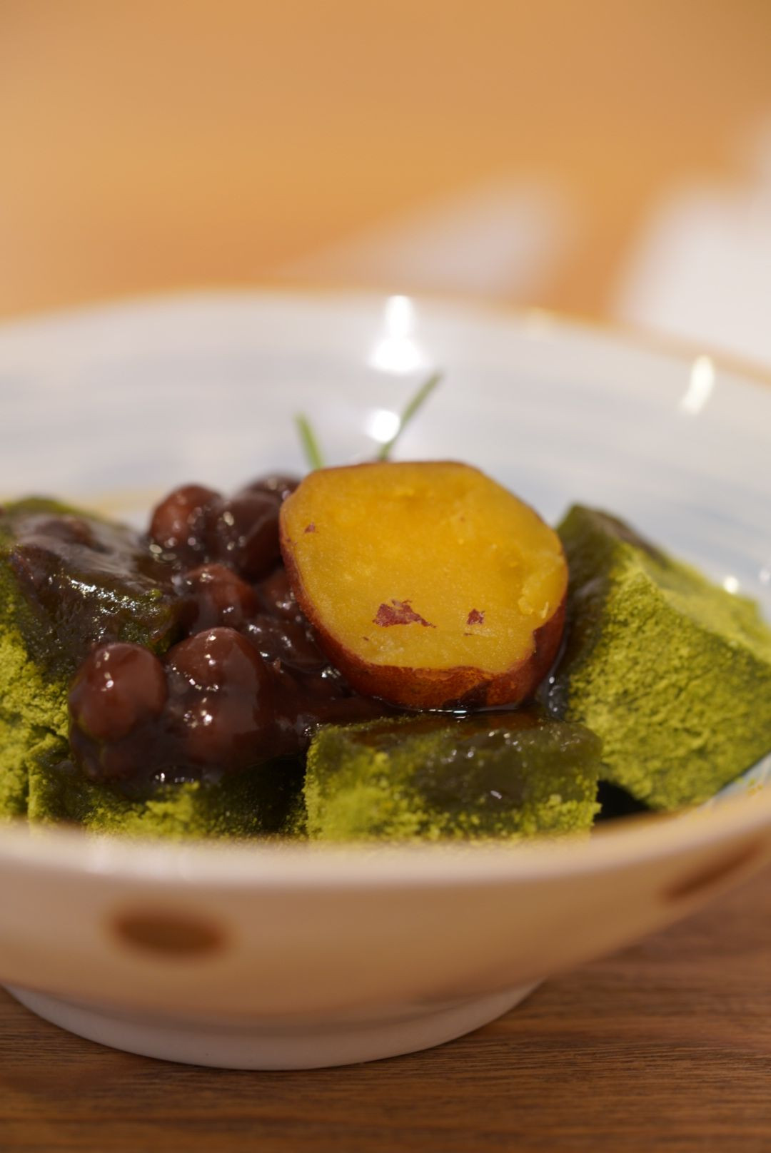 抹茶わらびもちです。コーヒーとマッチします! 小豆が甘過ぎず、コーヒーさえも引き立てる不思議!