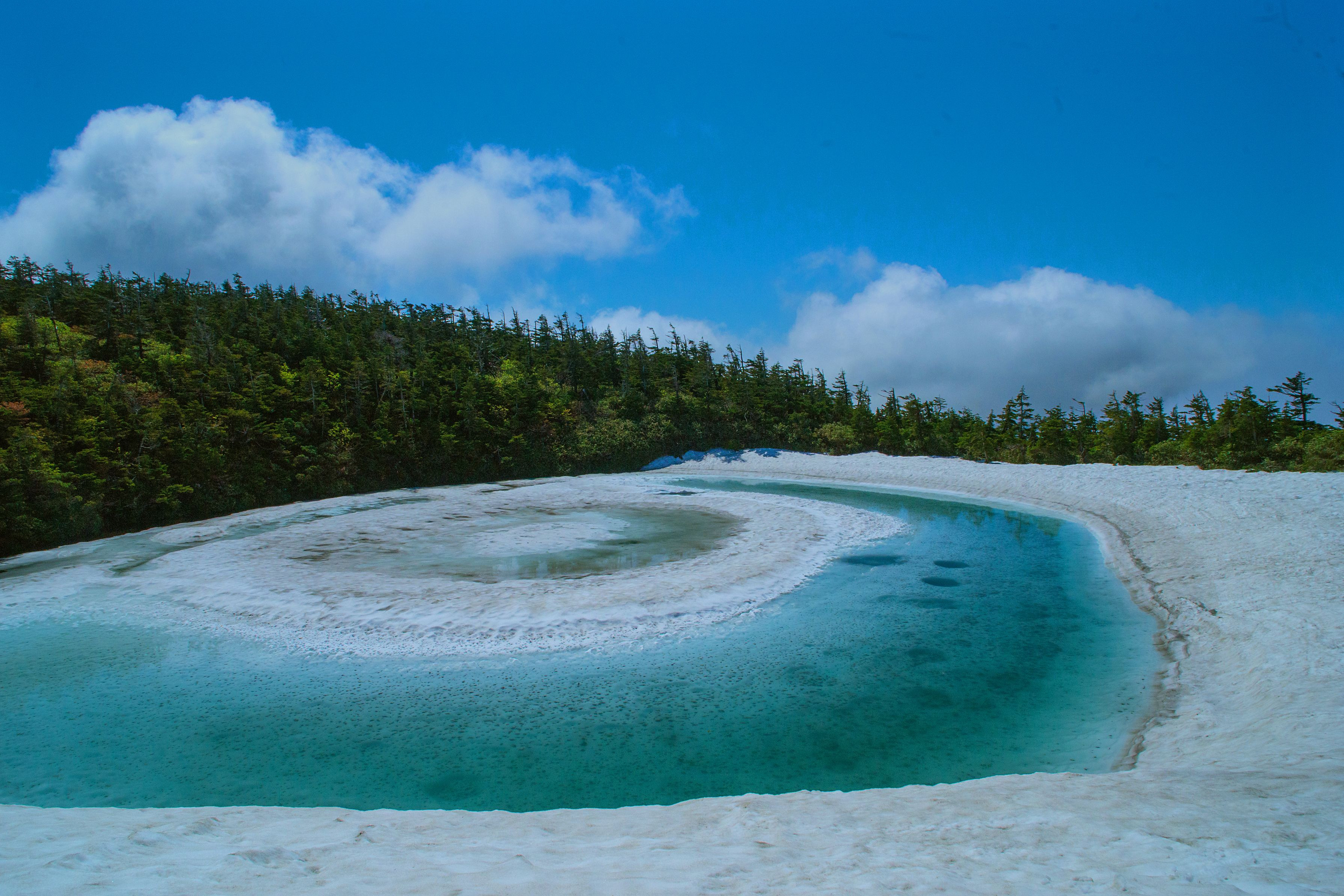 八幡平の頂上の鏡沼に、この時期現れる不思議な光景です。