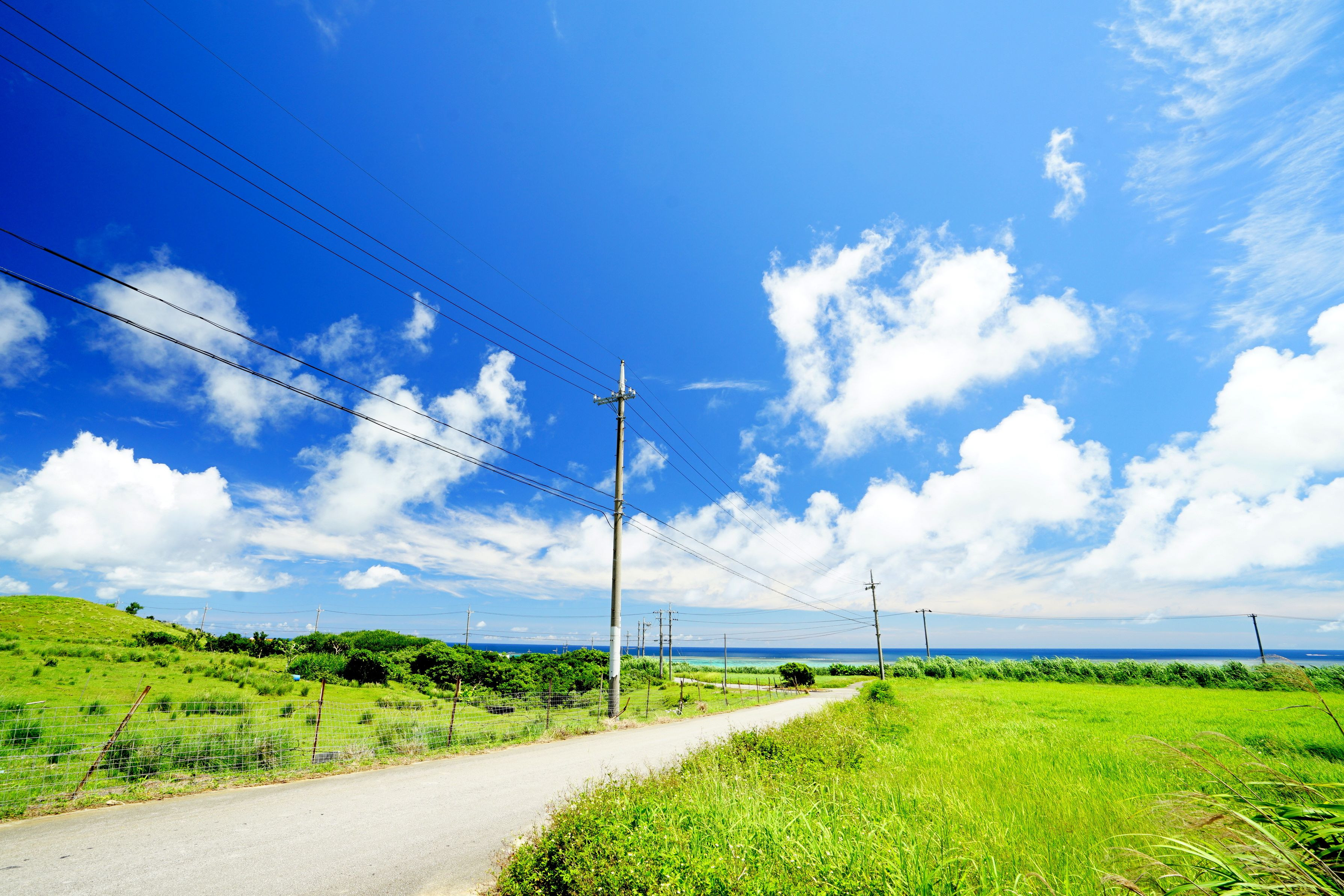 沖縄の小浜島です 原付を借りて島一周している間、ふと振り返った時に夏は背後におりました(^^) 蒸し暑い中、時間を忘れてしばらく空を見上げて撮った写真です