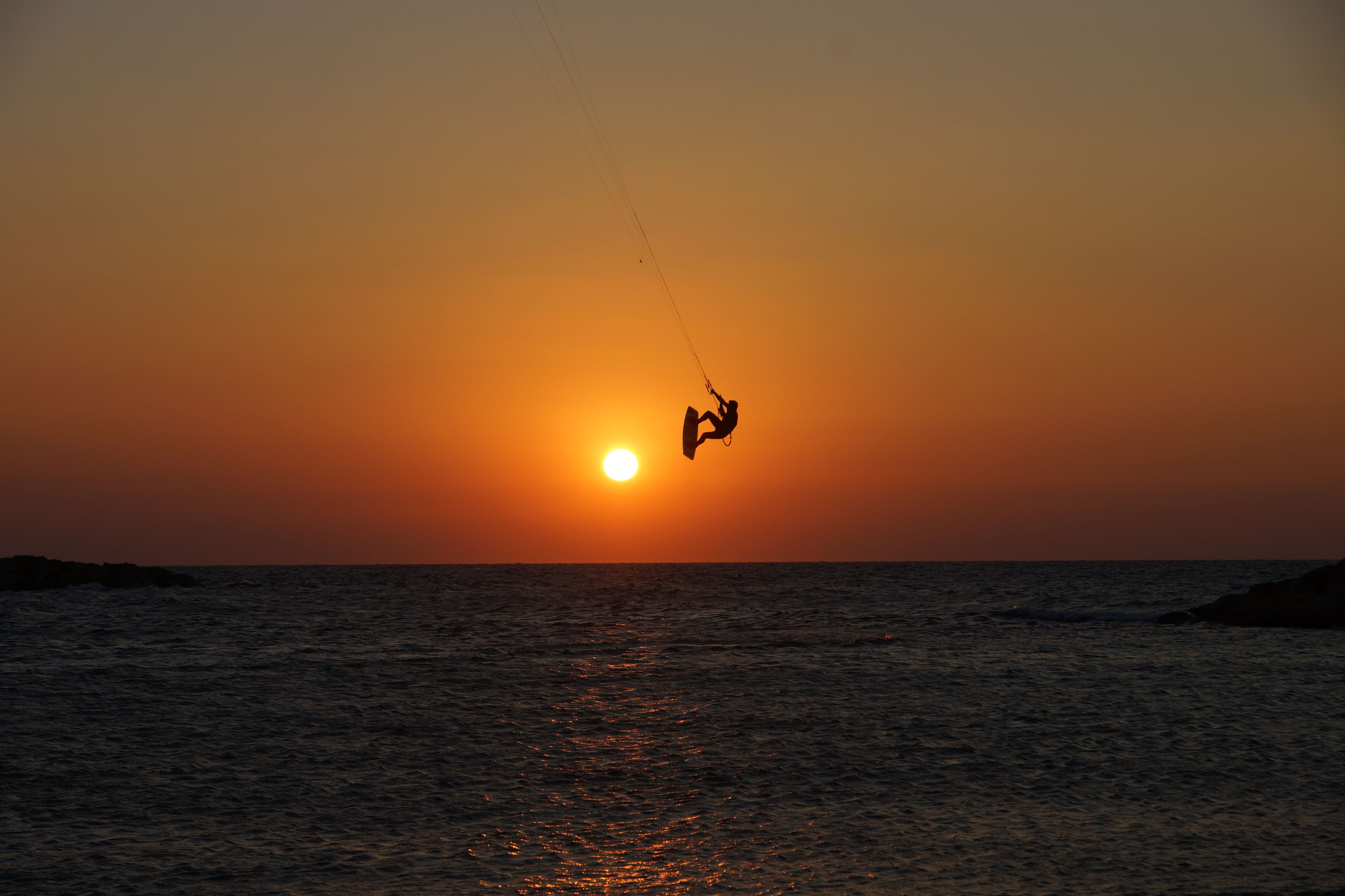 夕日とカイトサーファーを一枚に収めました。 【撮影地】Tel Aviv, Israel