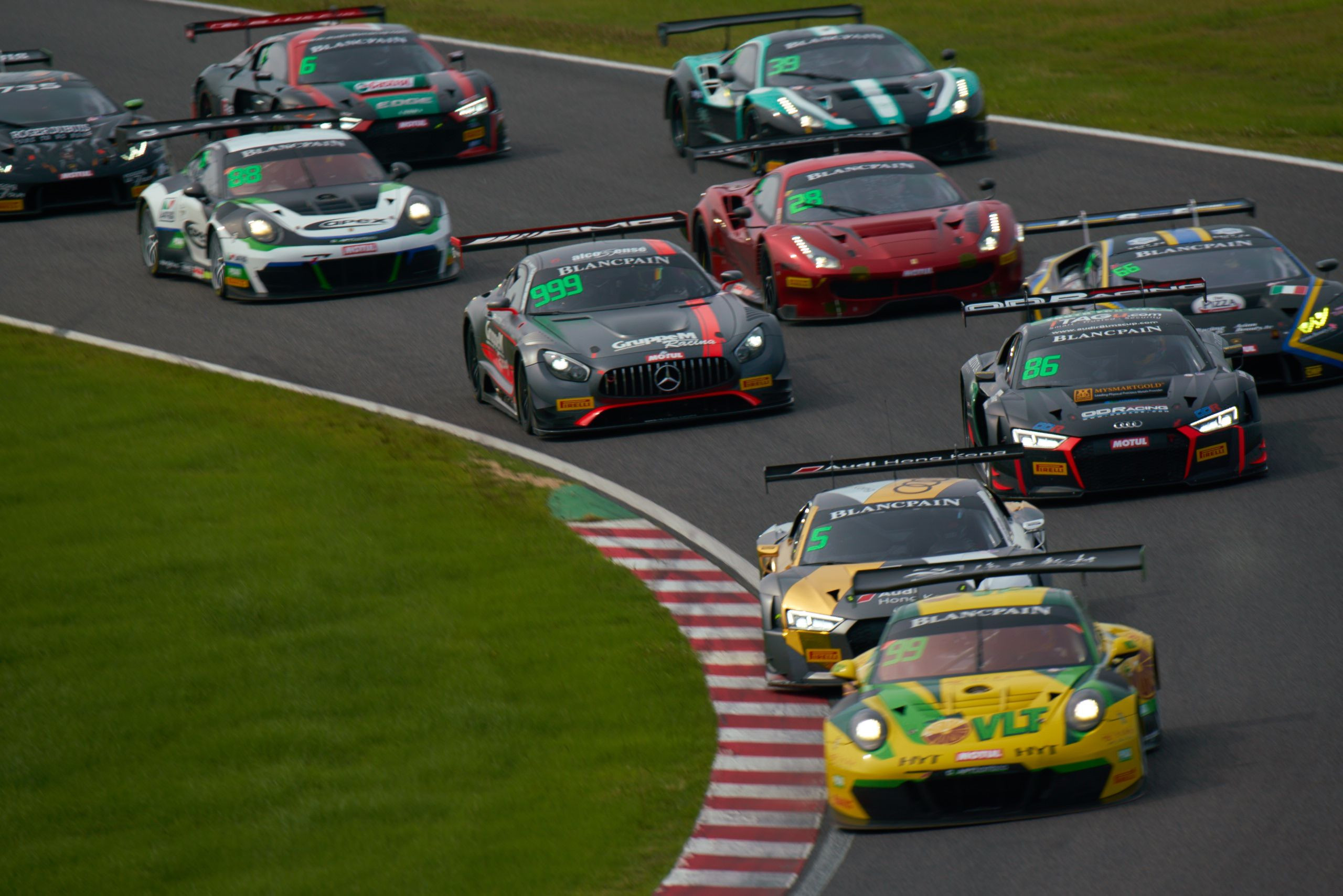 GT Asiaレース1オープニングの雪崩込み