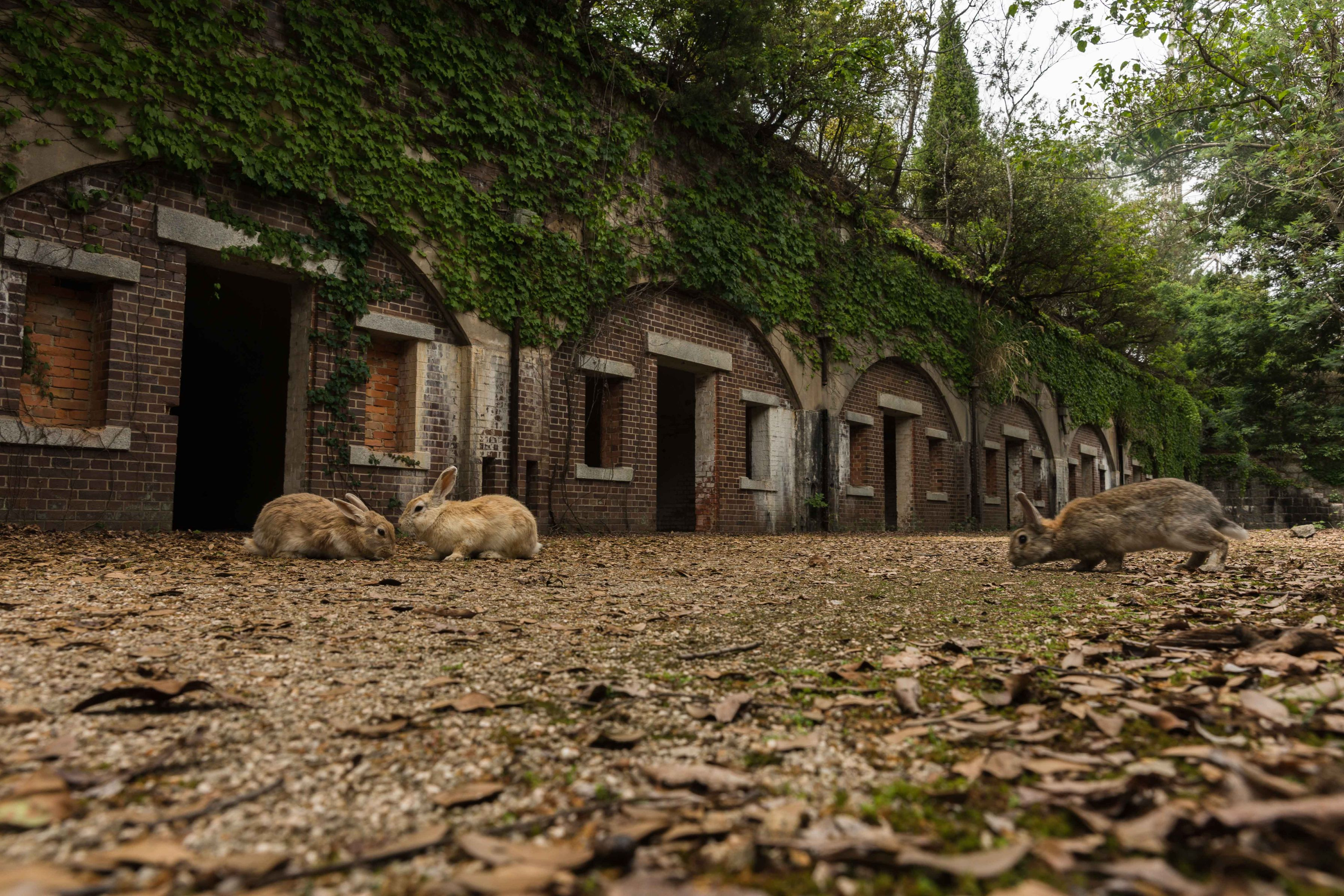 大久野島、中部砲台跡でもウサギ達が出迎えてくれました。