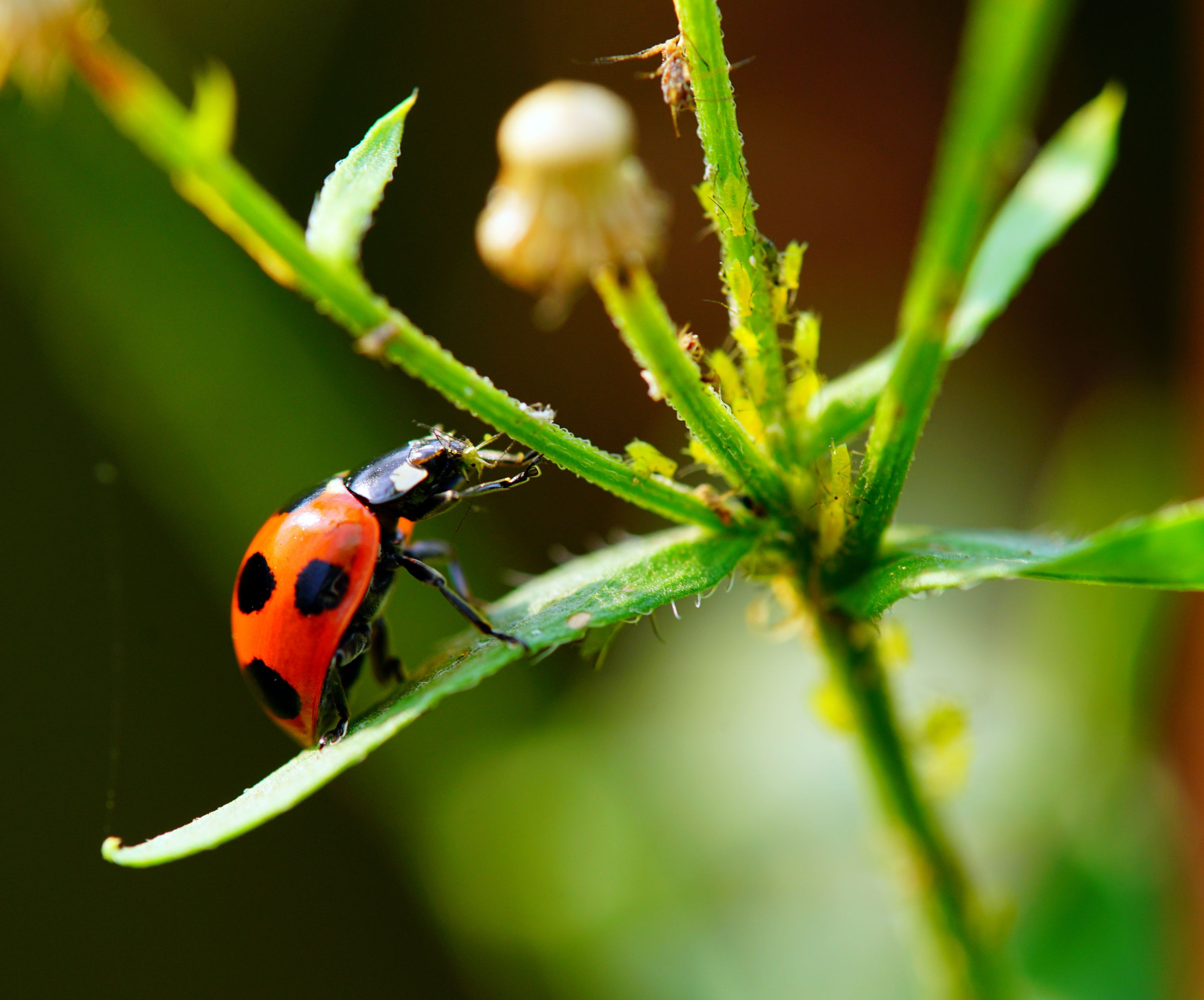 テントウムシさん、お食事中ごめんなさい(^-^; コンビニに立ち寄って、 そこで食べてる感じでしたw 虫の苦手な方、申し訳ありませんm(__)m