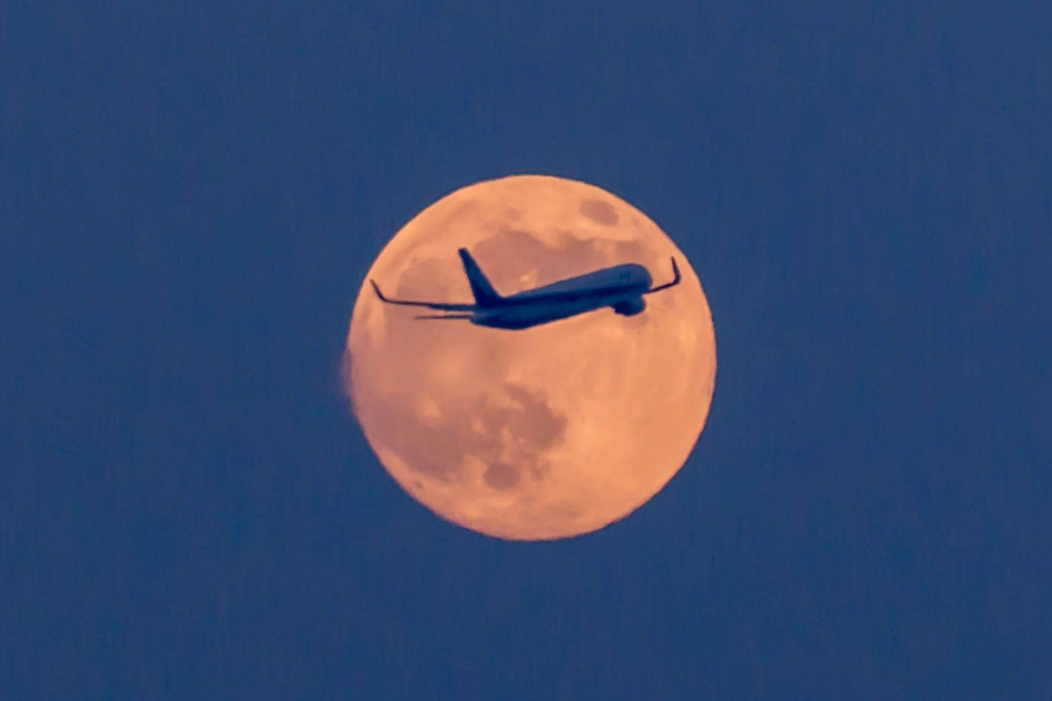 19時ころ、明るくなってきた月に向かって 飛行機が飛んでいきました。 連写、連写で頑張りました