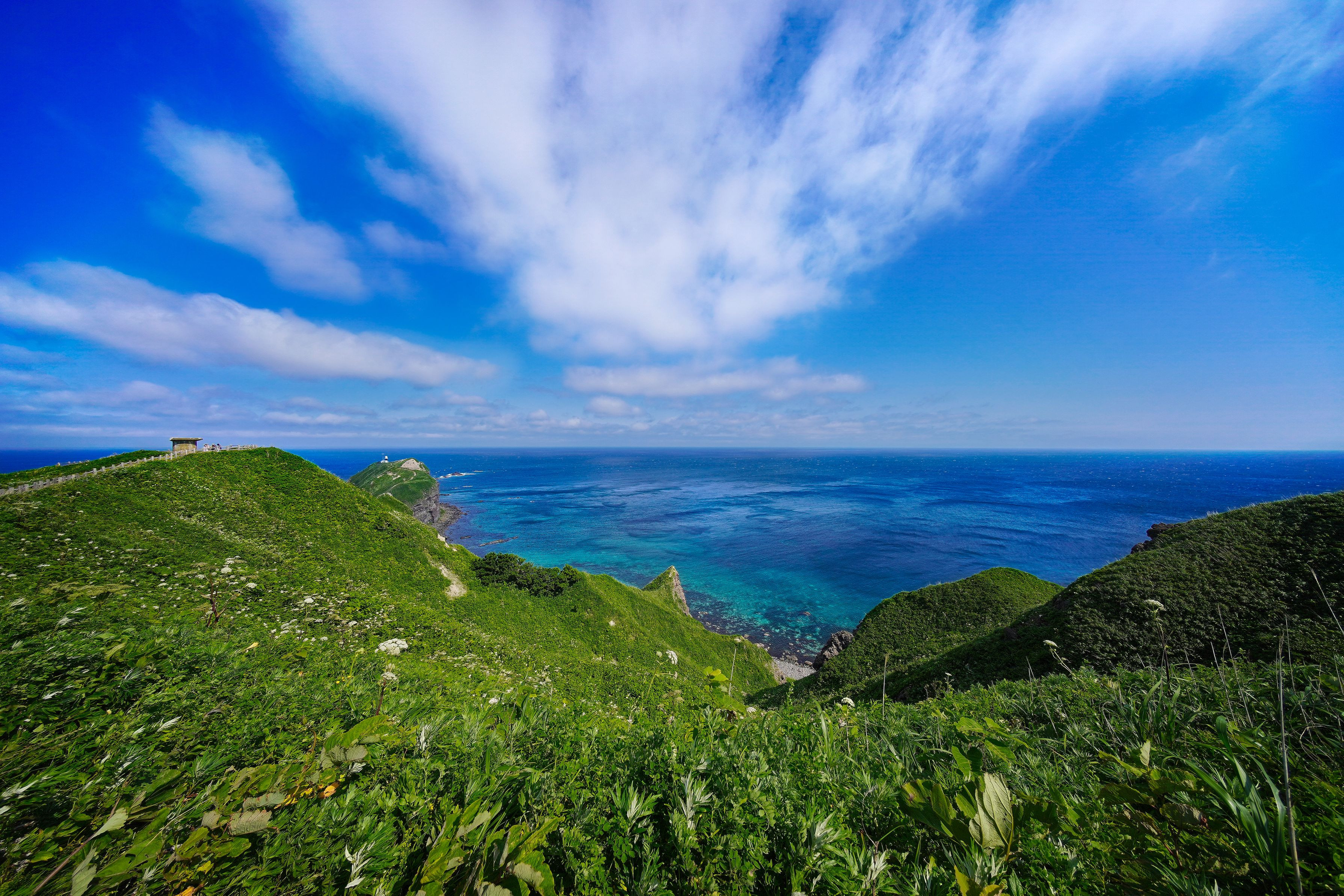 2017/7/8 積丹町神威岬 α9+HELIAR-HYPER WIDE 10mm F5.6 ASPHERICAL 角型フィルタなんて付けていたら、カメラごと風で飛ばされそうな強風。それでも初夏の青空と積丹ブルーは絶景でした、(*^^)v