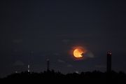 今日の気温は36度超え、真夏の暑さでした! 16時50分頃の西の空は曇っていましたが、隙間から真っ赤な夕陽が覗いていました! また、夜には19時40分頃には東の空から満月が浮かび上がってきました!丁度、池袋のサンシャインからの月の出でした!