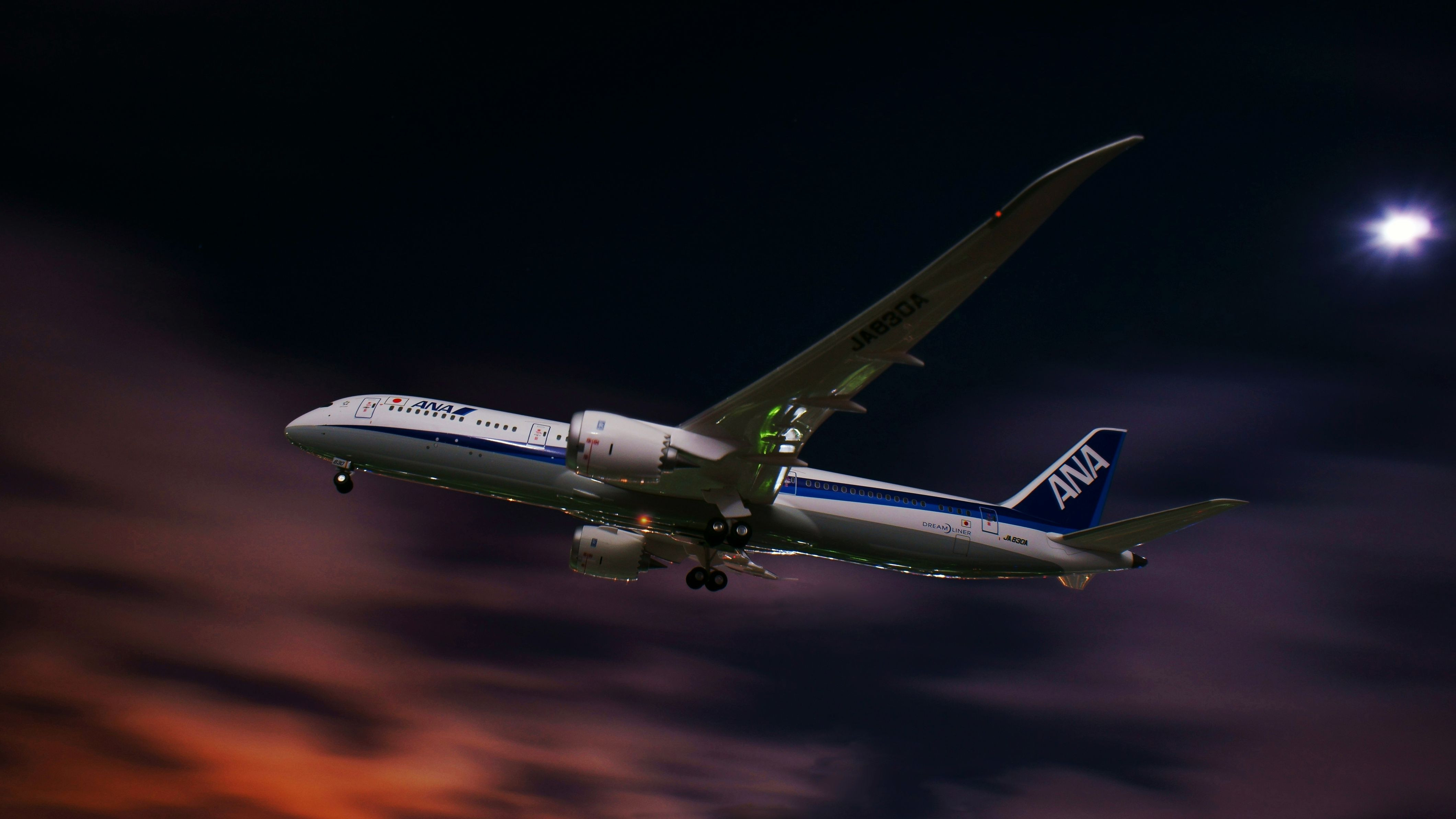 雲に反射した品川埠頭のオレンジ色の光と月明かりの中、雲が速いスピードで流れていました。そんな空を背景に模型を撮りました。背景の雲が流れることによってスピード感が出せたと思ってます。