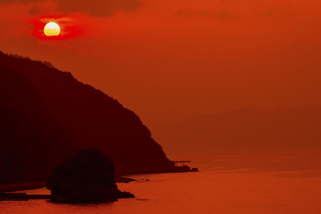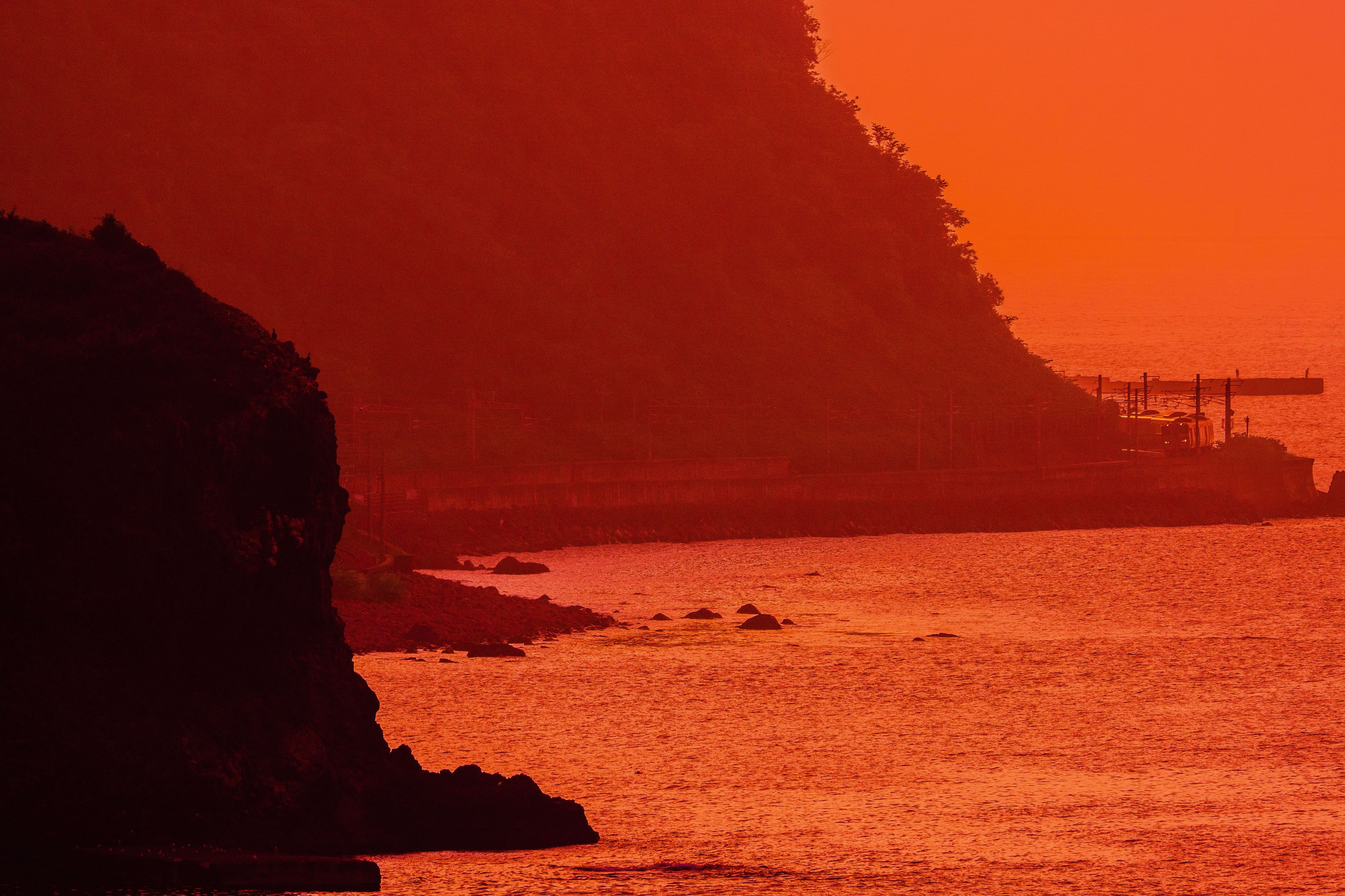 夕日と島と電車のコラボレーション。