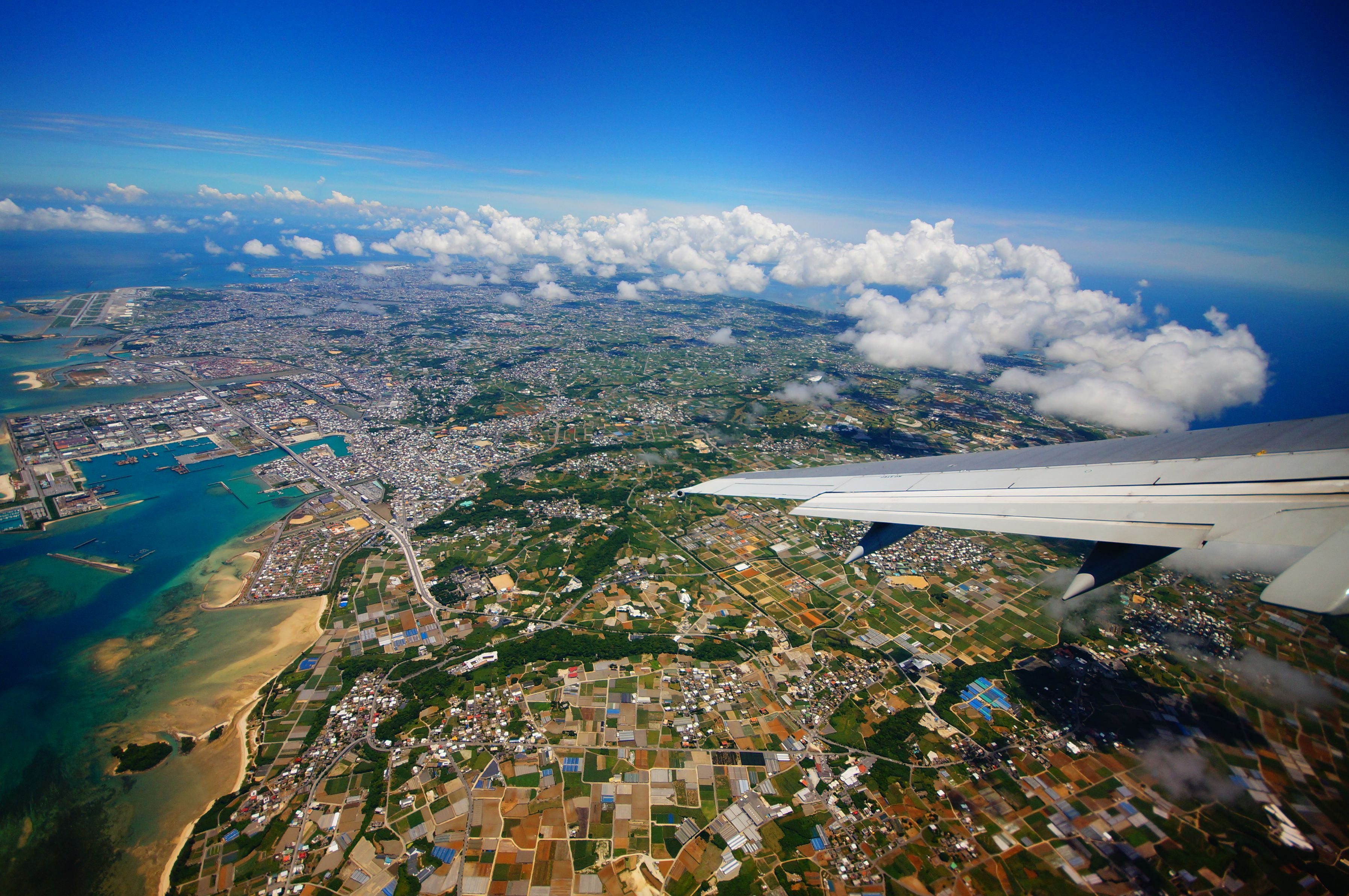 家族旅行で訪れた沖縄。 非日常の毎日を過ごし、帰りは那覇空港RWY18から離陸。 南風(はえ)の吹く中、豪快に市街地でレフトターン。 眼下に広がる南国の街並み、青い空と海そして夏の雲に別れを告げました。