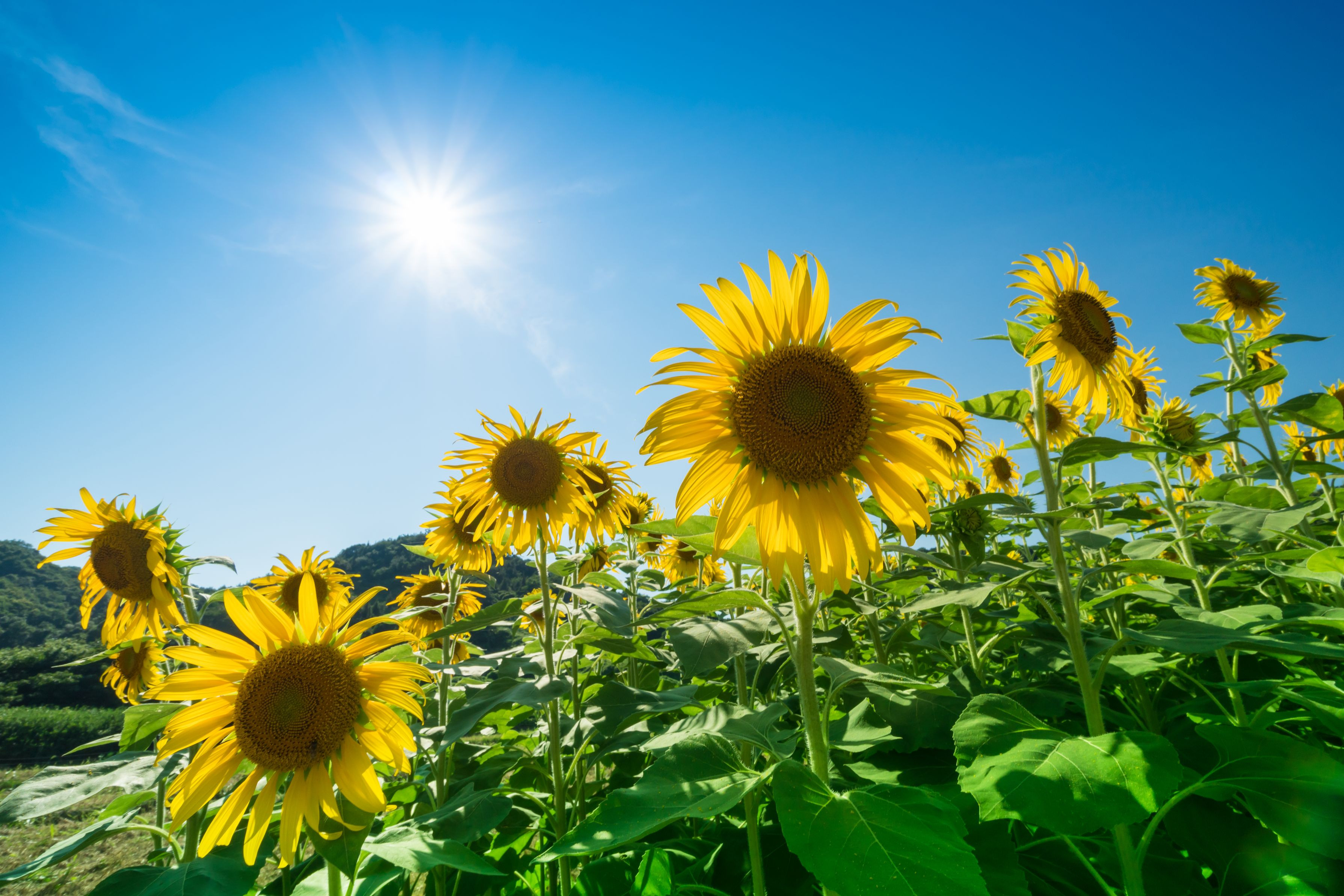 ヒマワリも暑そうですが、頑張ってますね。 私も夏バテしないように頑張ろうと元気をもらいました。