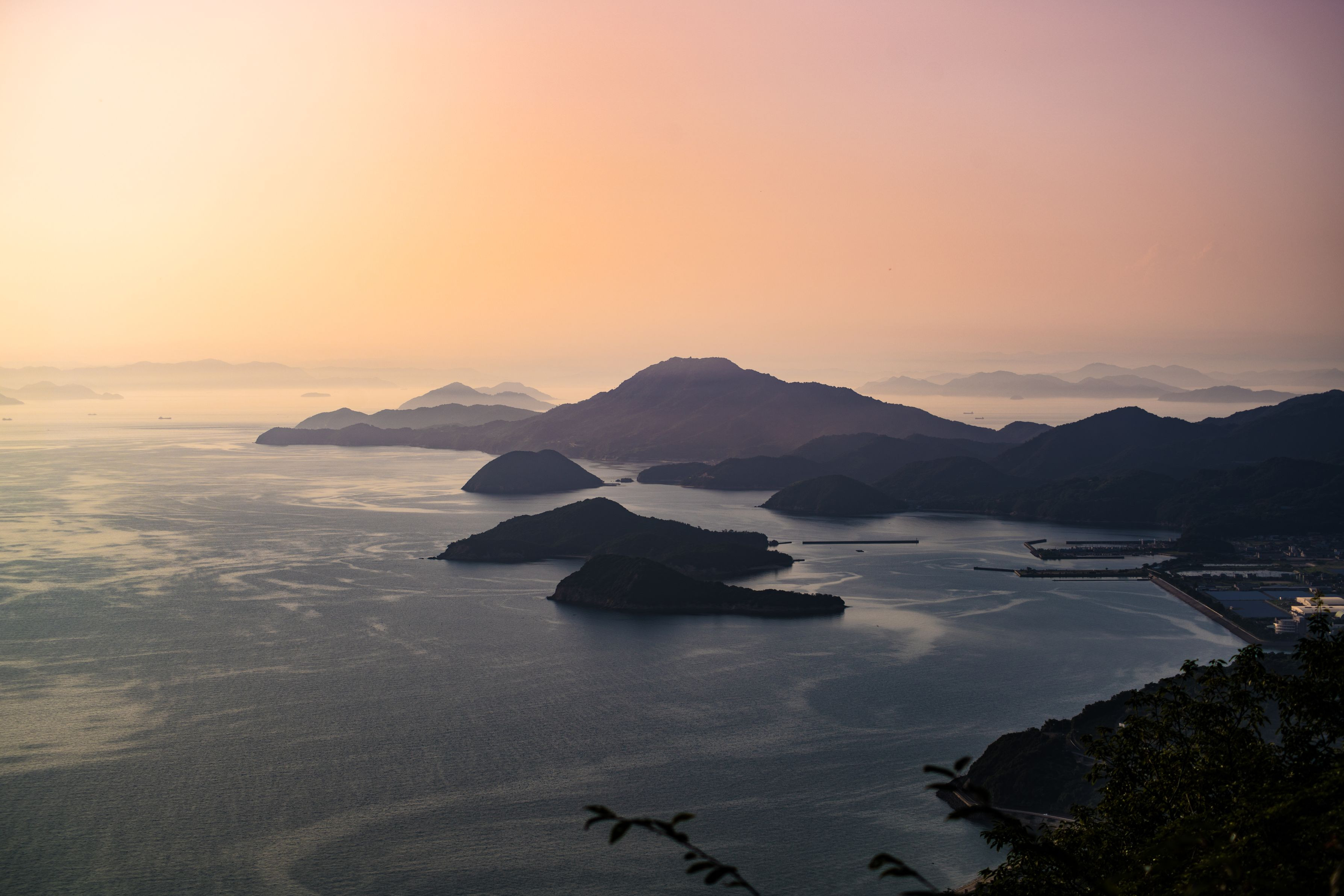 夕方の瀬戸内海の多島美はとても美しく幻想的でした(*゚▽゚*) 夕日がトンネルから見れる七宝山トンネルや不思議な文様の砂浜がある父母ヶ浜からもすぐ近く高屋神社の駐車場から見れるこの辺りの地域は絶景ポイントが凄く多いです。