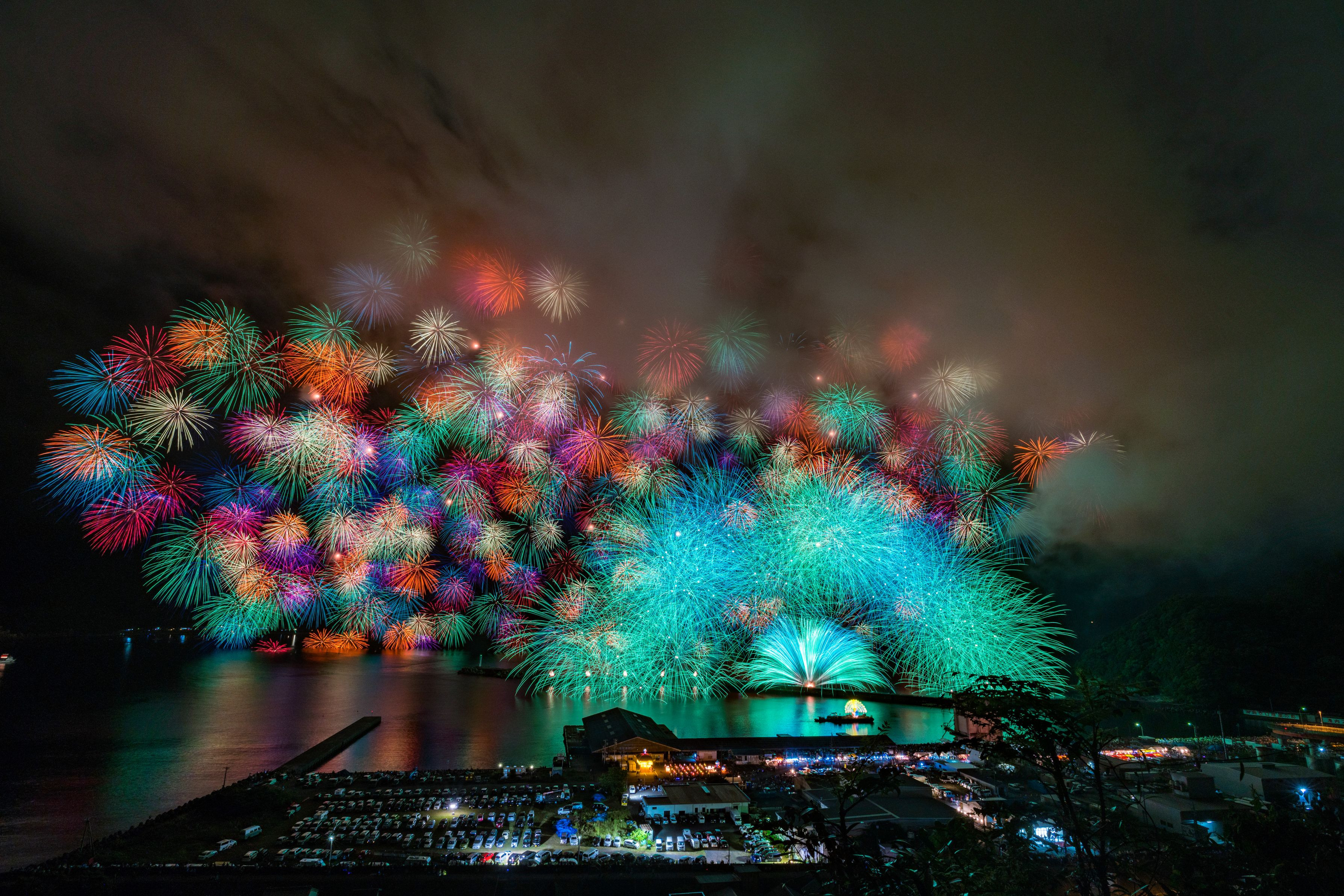 きほく燈籠祭を見に行ってきました ほぼ無風状態で最初のスターマインで以降はずっと煙だらけにw 彩雲孔雀は大きく広がるので、煙の範囲外の部分が何とか写りました。
