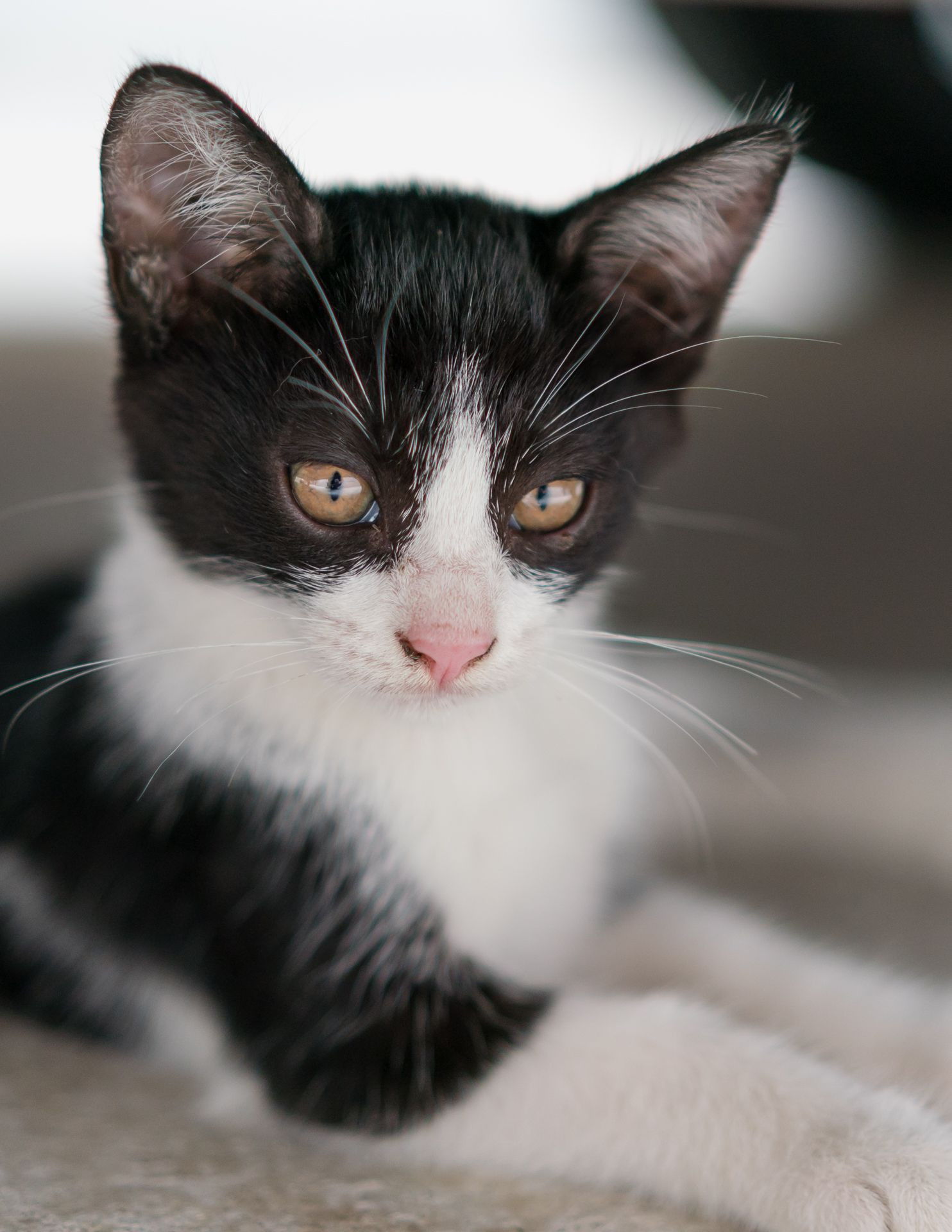 ガレージの中、私の愛車の下で休む野良猫。