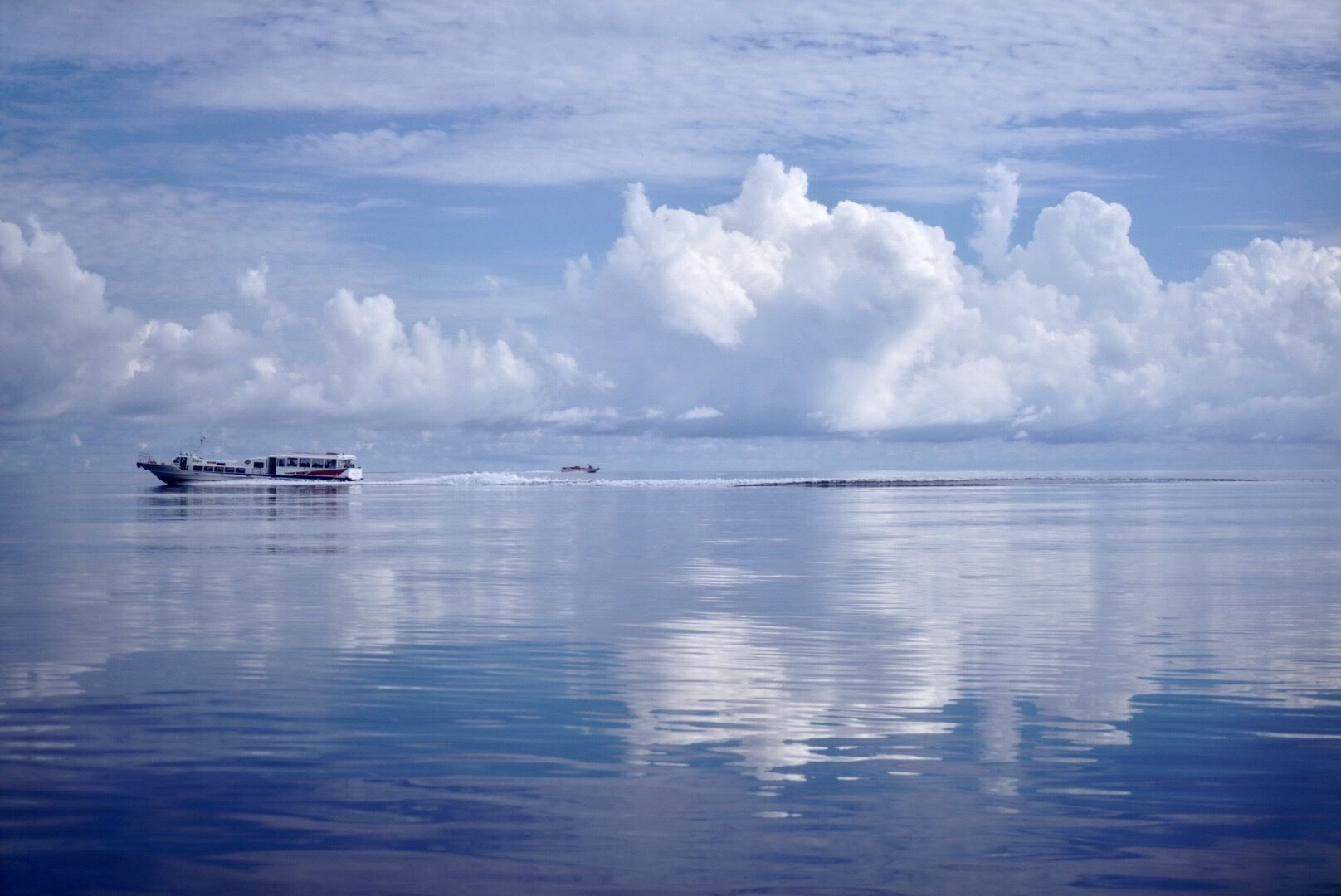 新月の時期で海の引き潮の時間帯、凪で空の景色が写って居ました。
