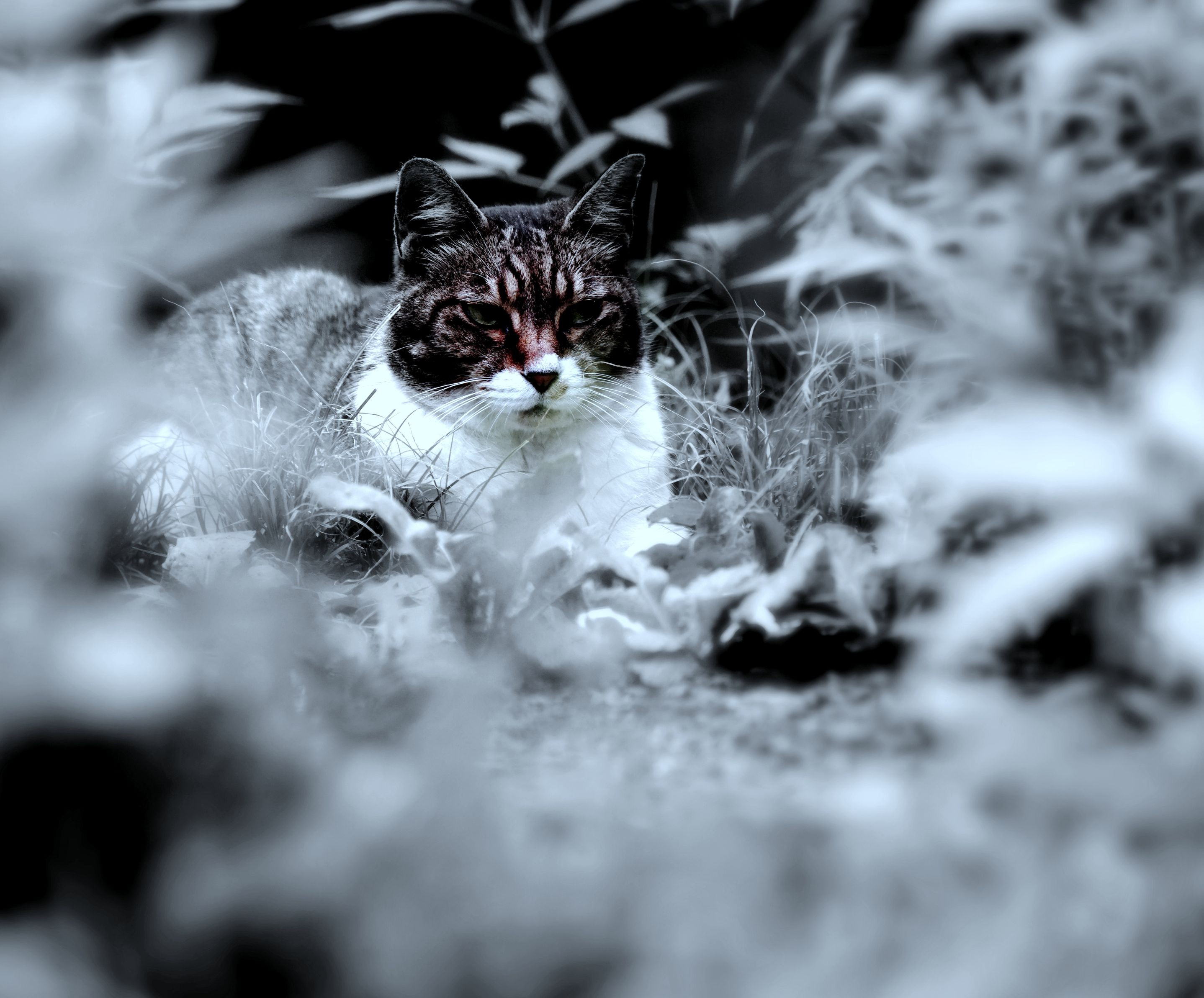 大きな公園の中央部、 草むらに隠れて、何かをジッと見つめていました。