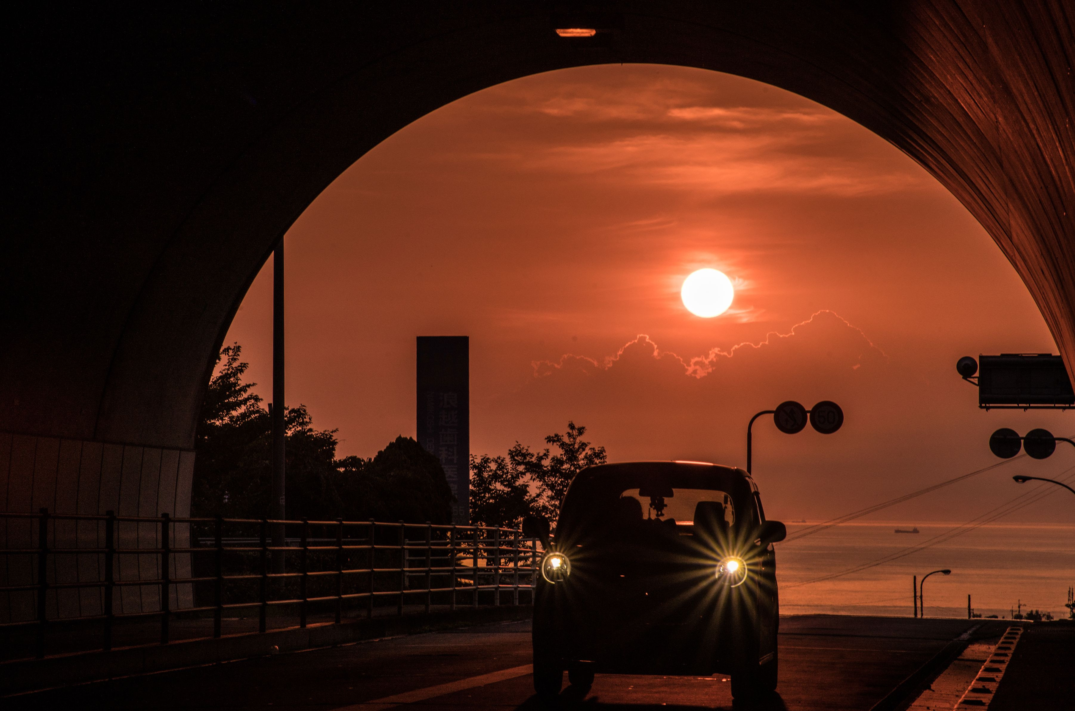 1枚目は通りかかった車のヘッドライトが偶然いい感じになりました(*゚▽゚*) まるで小さな太陽のようで面白かったです。 色々な表情が見れるこのトンネル最高です!!