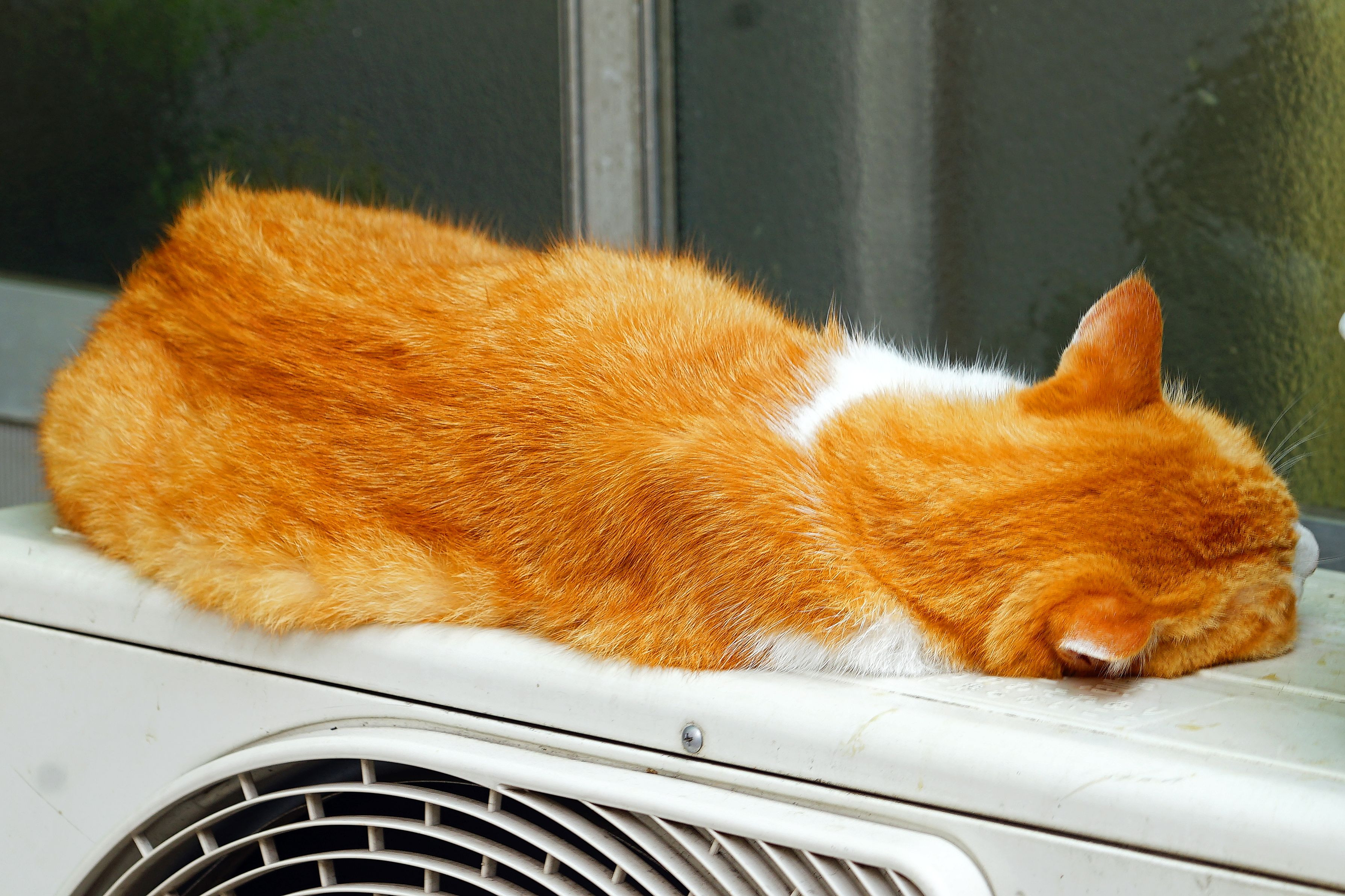 暑い、暑い。そこで涼しい写真をということでお届けします。エアコンの上の猫ちゃん。面白いけど、涼しくはありませんね。ごめんなさい。