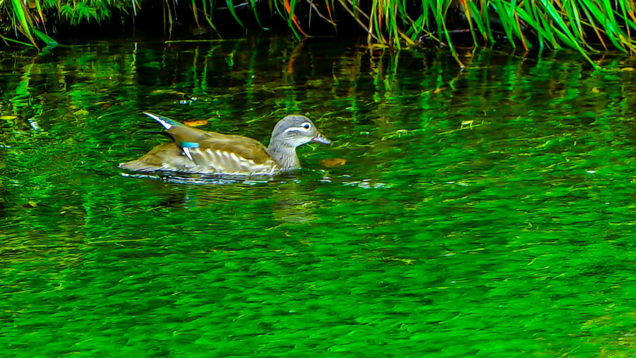 綺麗な水面を泳ぐ鴨さんは、気持ち良さそうです。