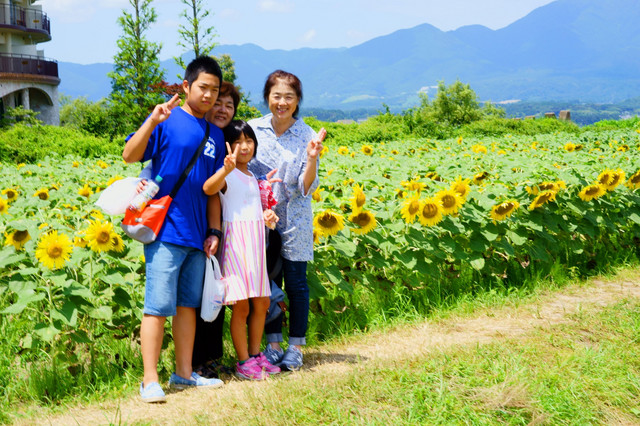 滋賀県守山なぎさ公園、ひまわり畑ほのぼのとした光景。