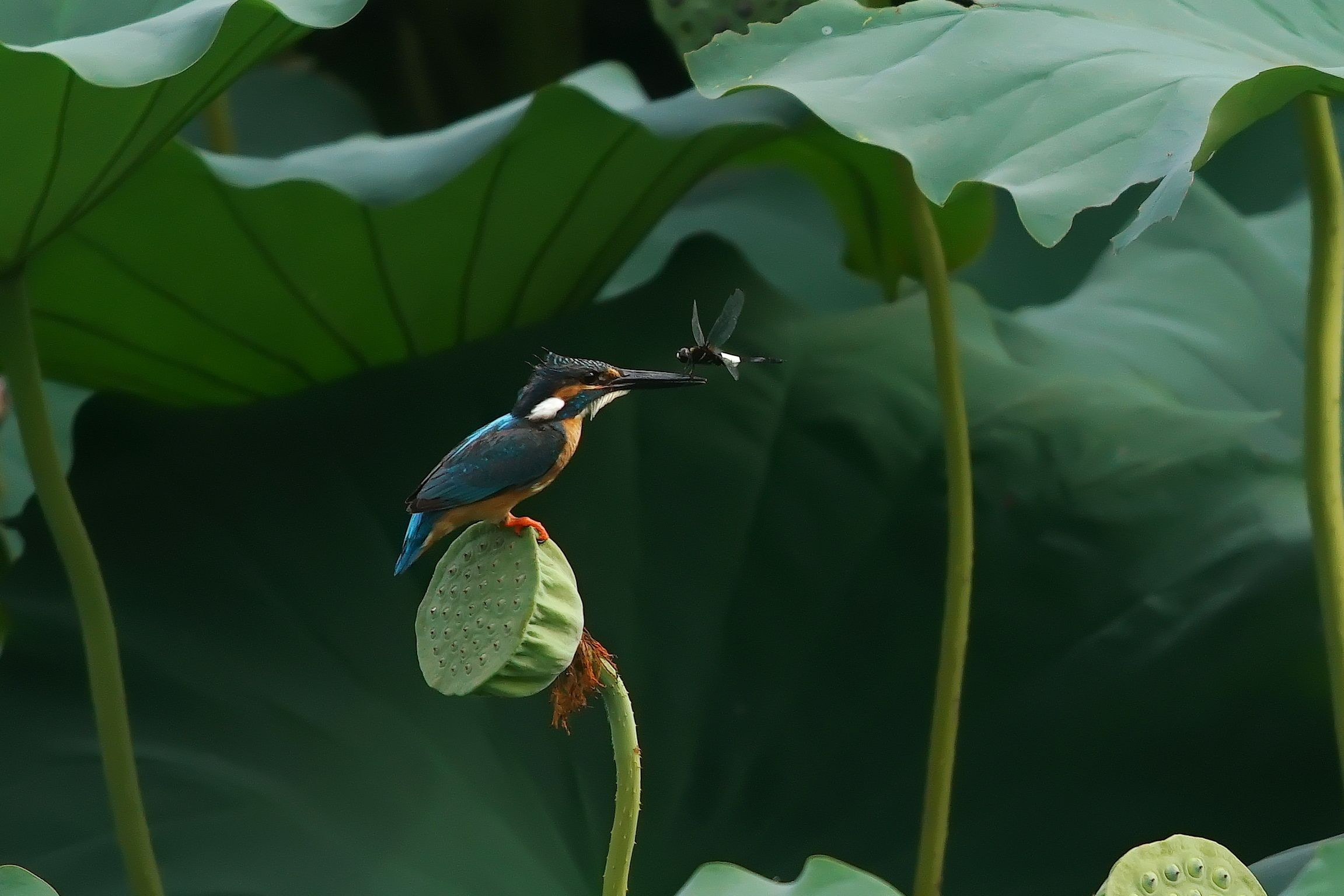 蓮カワを撮影に行った時の写真です!! シャワーヘッドに止まった所にトンボが止まりました~。 止まり物設定にするのを、忘れちゃいました~。