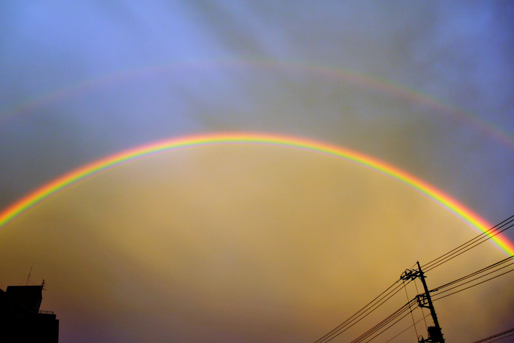 こちらでは迷走台風での被害も無く過ぎ去っていきました!被害に遭われた地域の皆様にはお見舞い申し上げます! 何時もの日の入りの時間帯には綺麗な夕景と大きな虹が出ました!虹の色もクッキリとしたW虹で、近年では一番の虹かと思います!