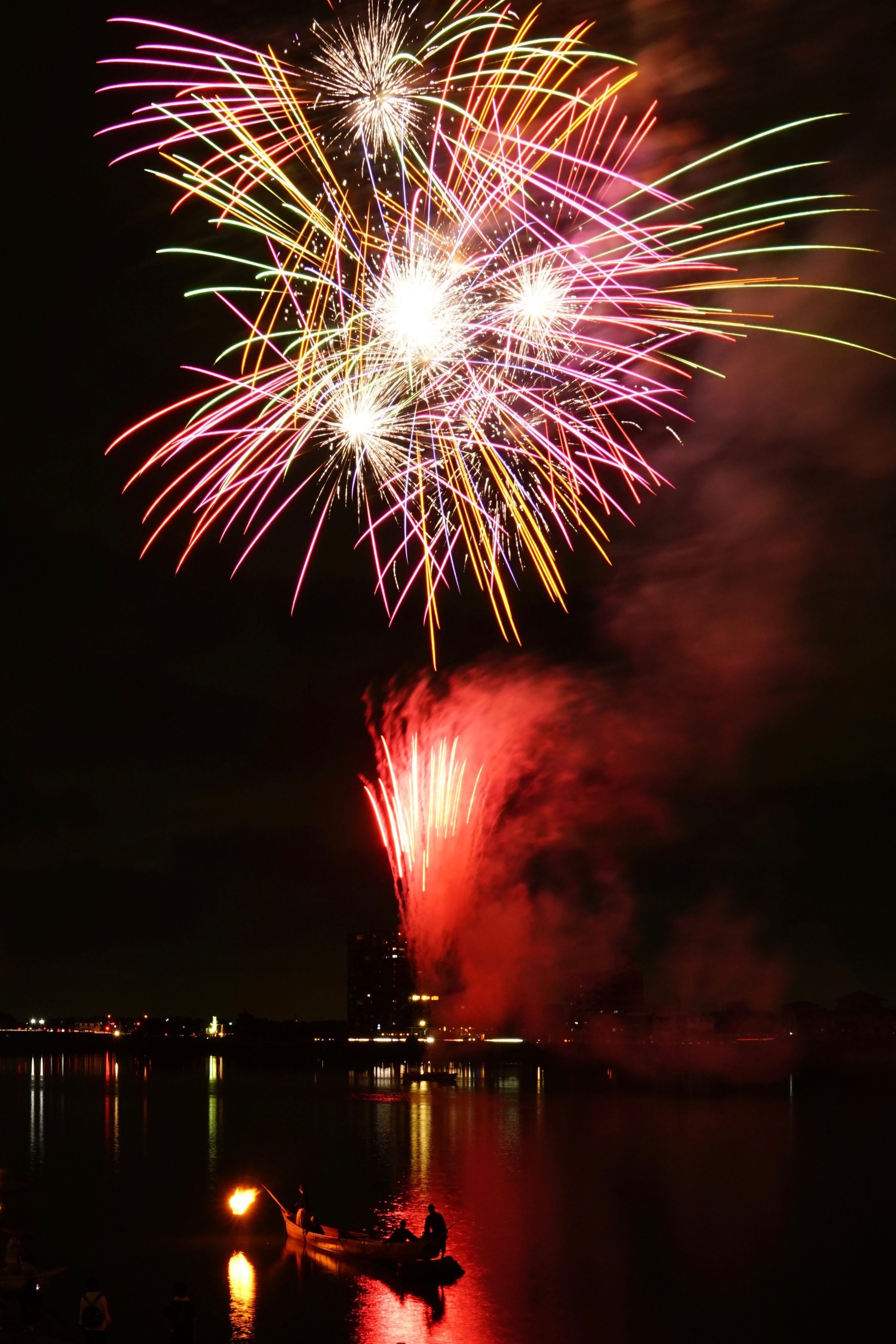 一艘の小舟から上げられる小さな花火なので地方の風情が出てれば良しとします。