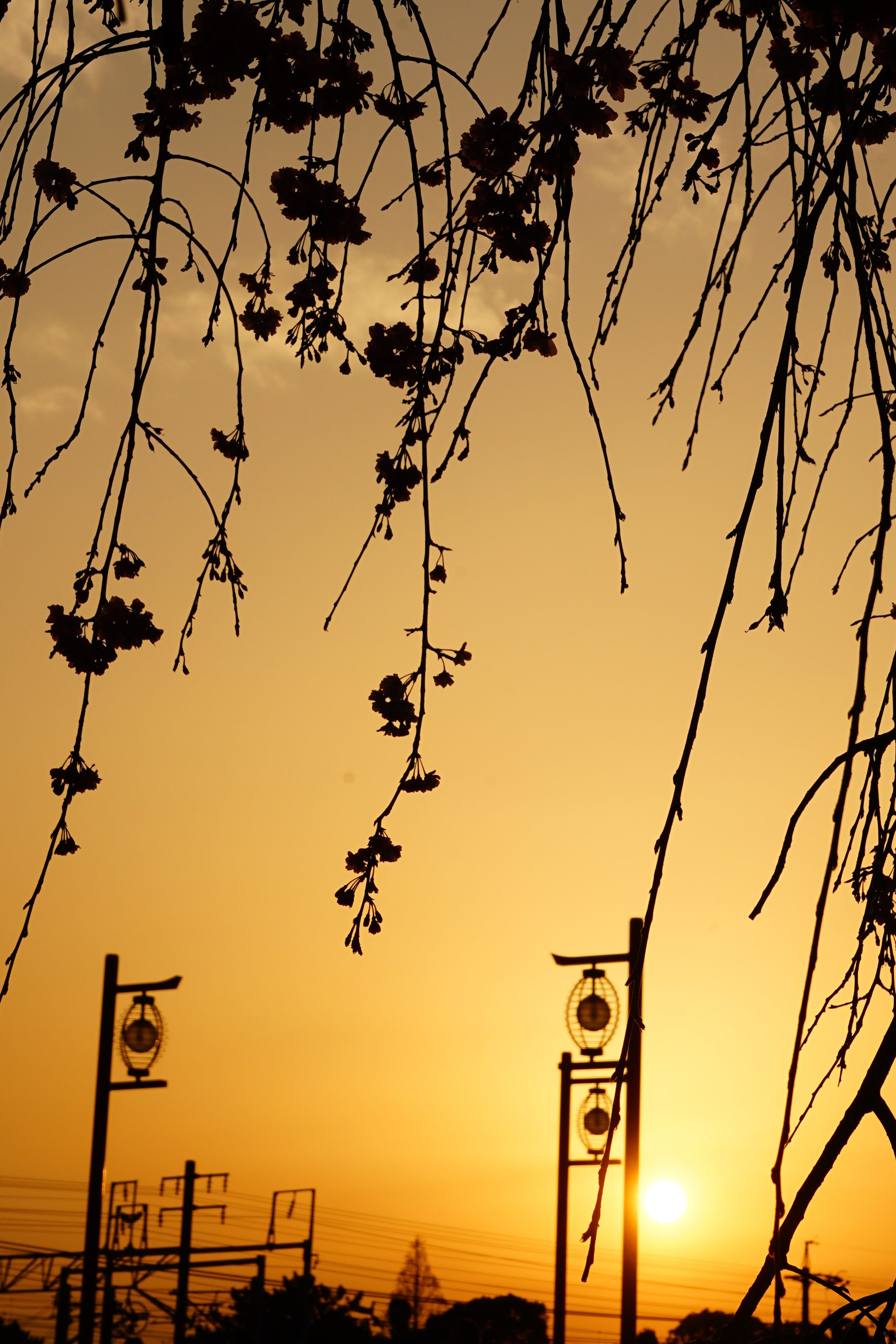夕日と桜