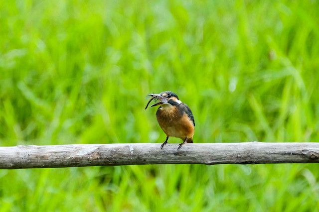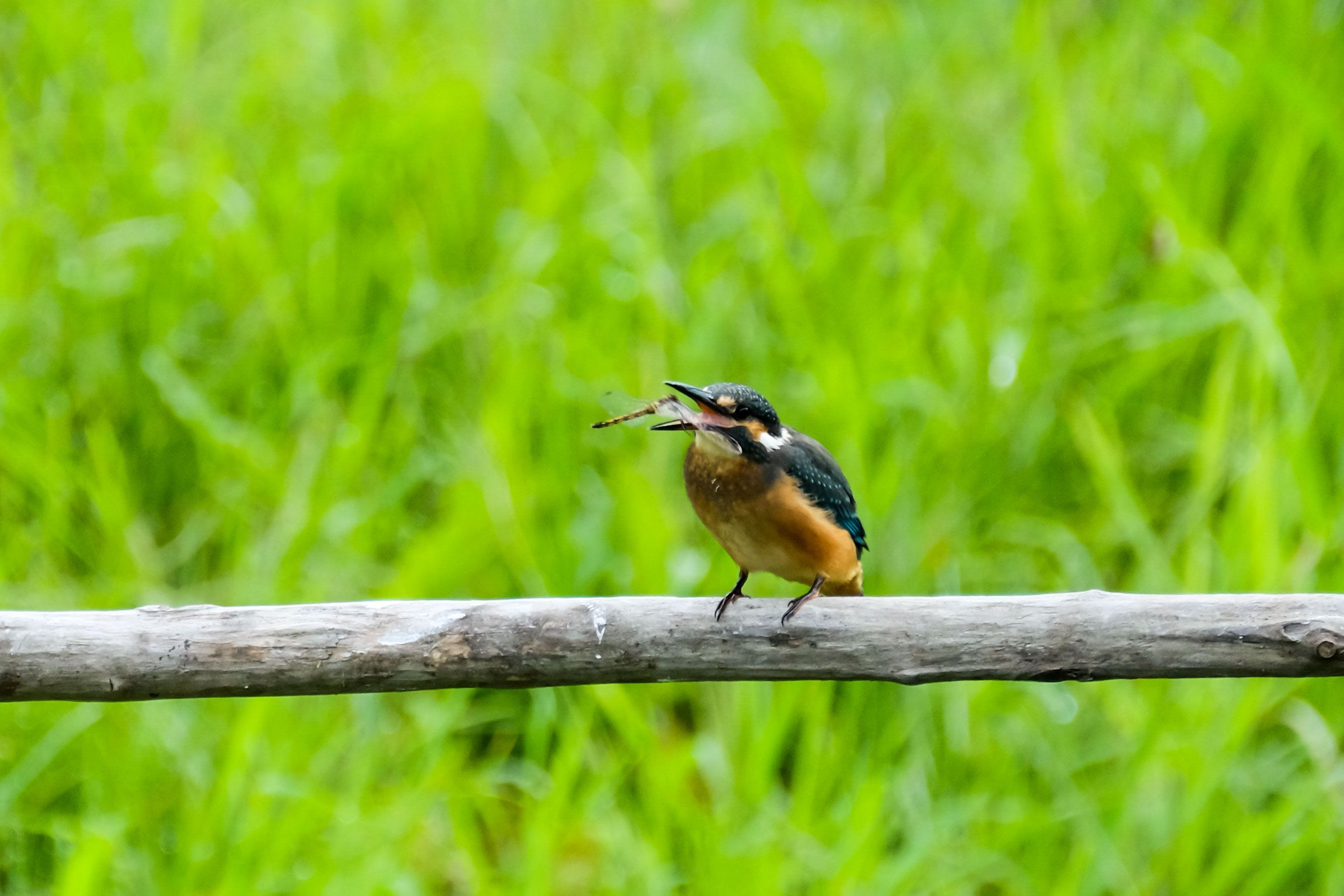 都市伝説だと思っていたカワセミのトンボ捕食! ついにとらえることが出来ました。 羽根が邪魔でなかなか飲み込めなかった~(^^♪。 ※二番子のメスだそうです。